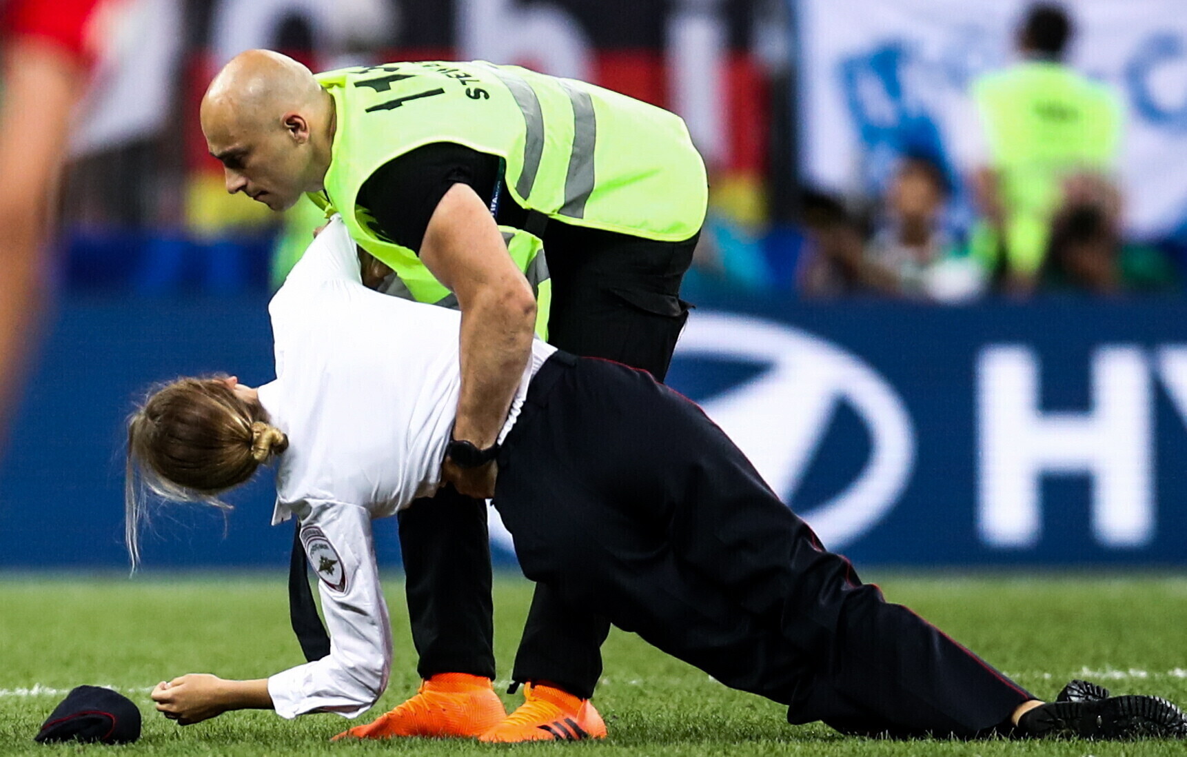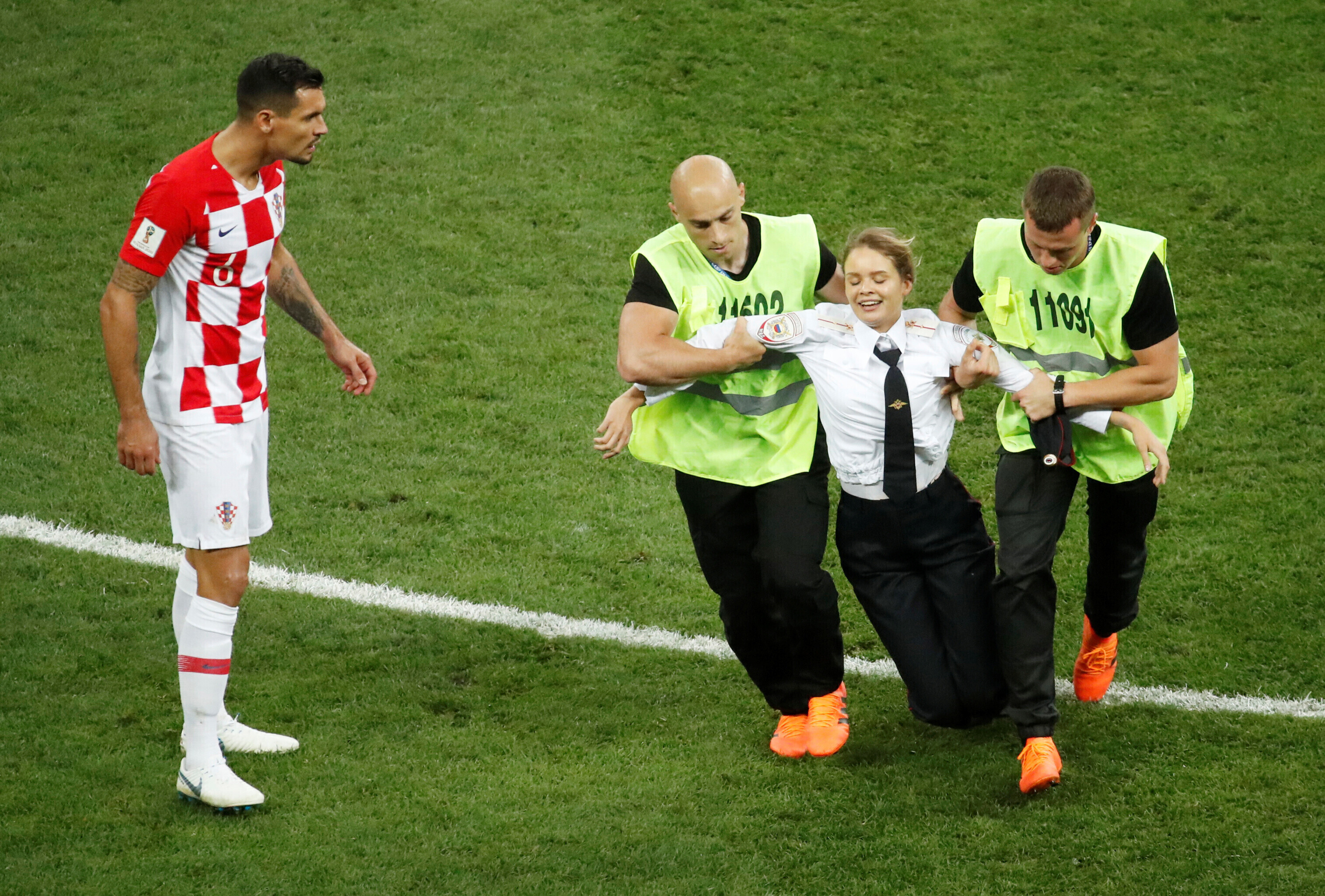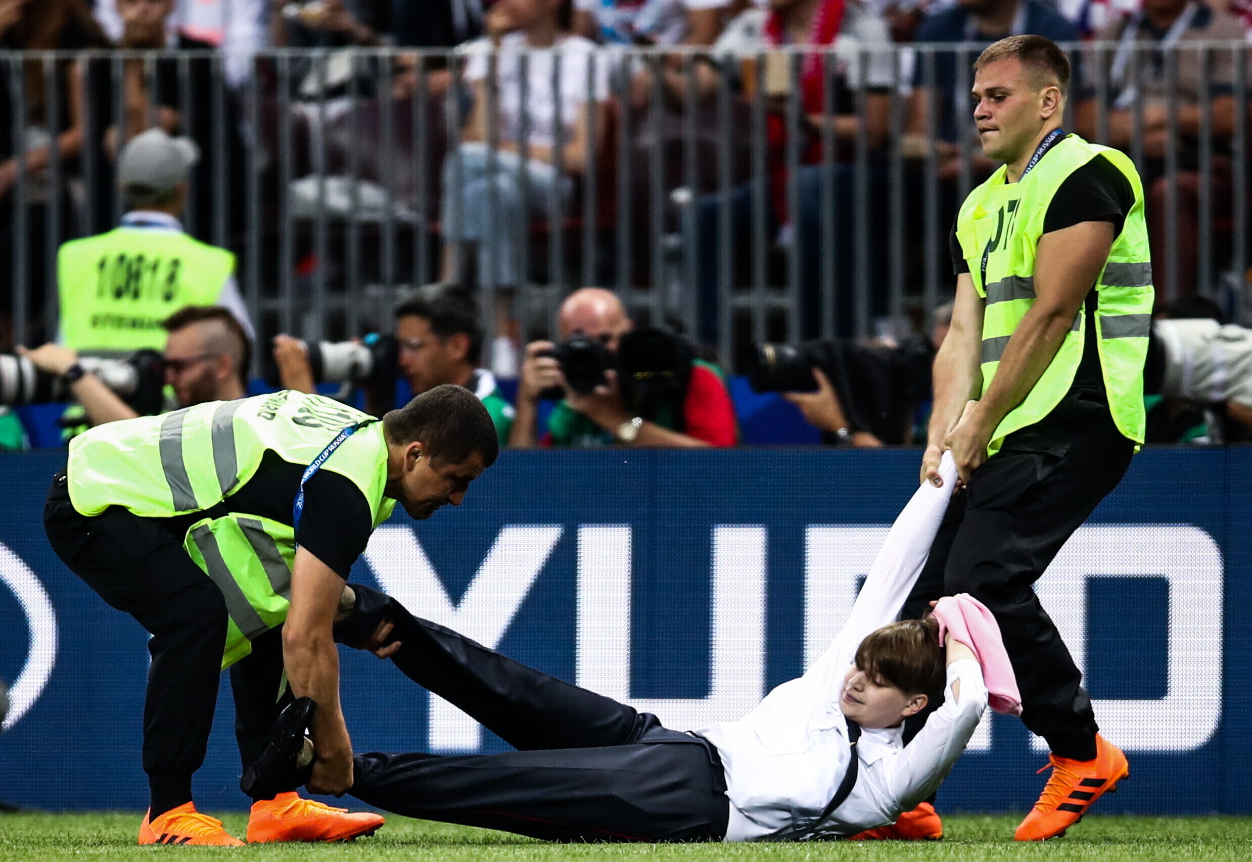 Venemaal toimuva jalgpalli maailmameistrivõistluste finaalmängu ajal jooksid neli inimest staadionile. Vastutuse teo eest võttis punkbänd Pussy Riot.
