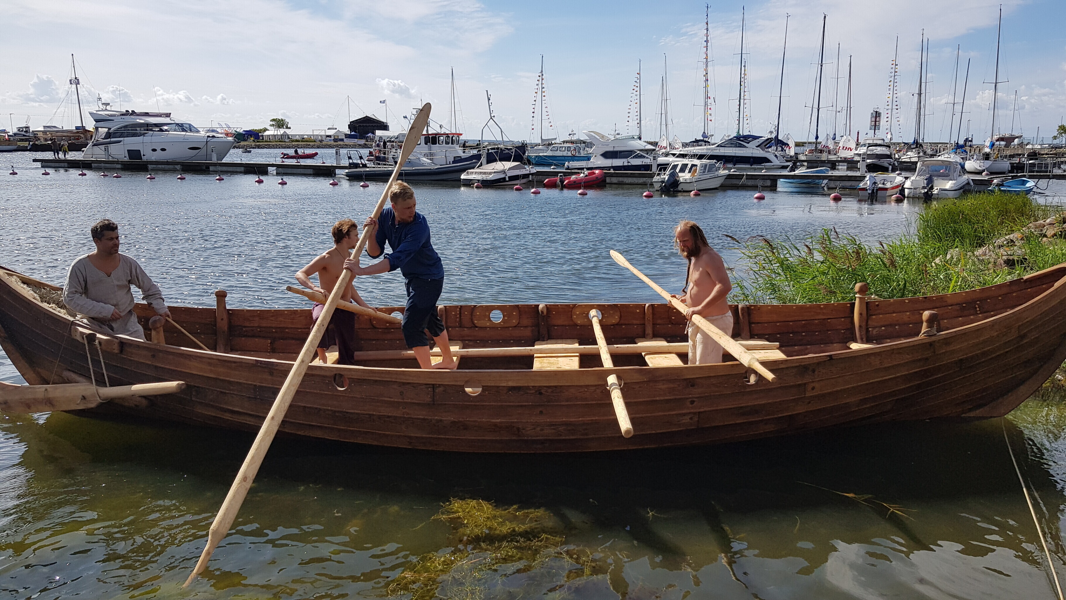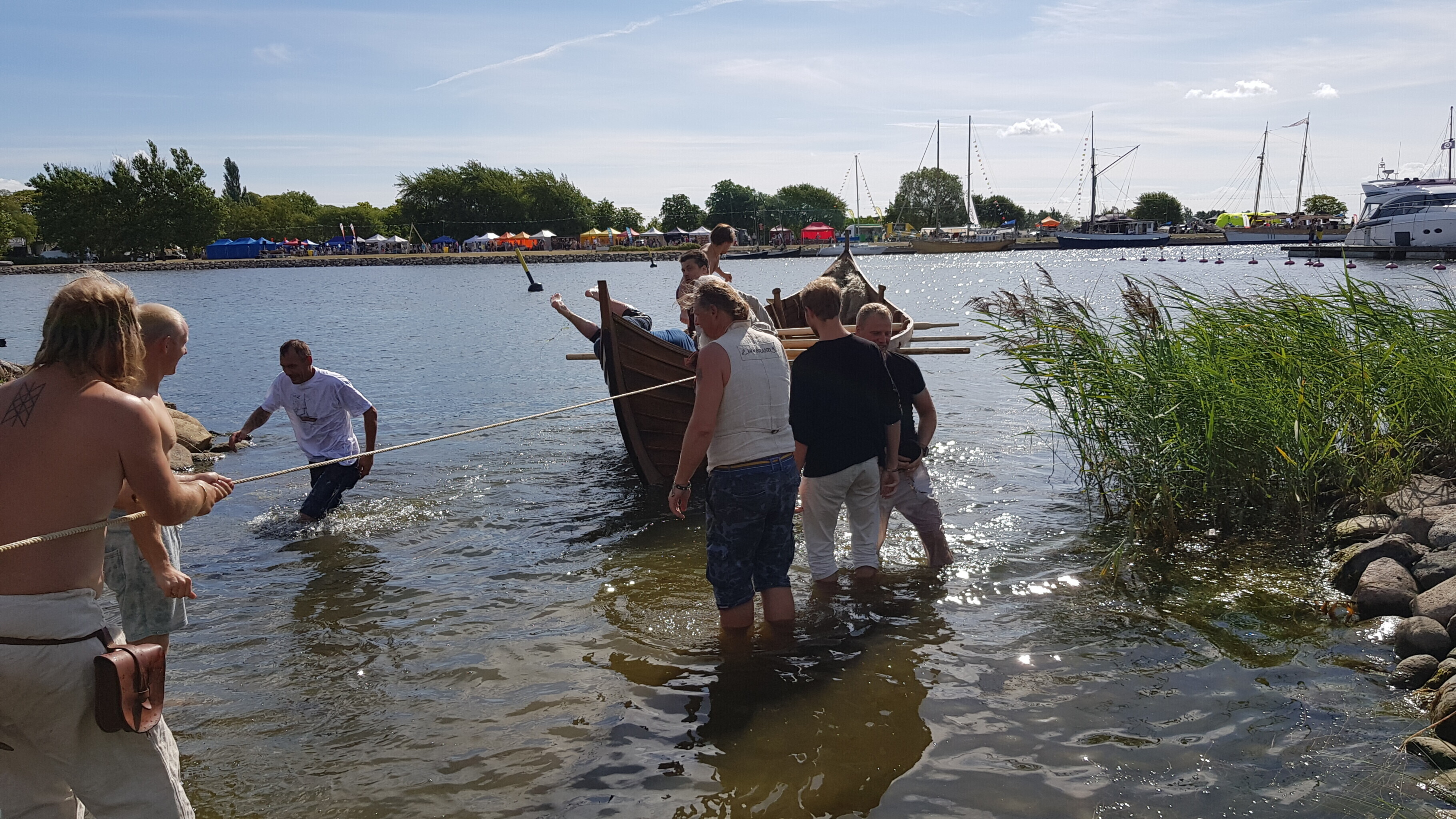 Arvestades kogu merepäevade siginat-saginat ja rahvarohkust kujunes selle, mandrilt spetsiaalselt siia veetud kümnemeetrise viikingilaeva veeskamine täna hommikul äärmiselt tagasihoidlikuks sündmuseks, vahendas "Aktuaalne kaamera".