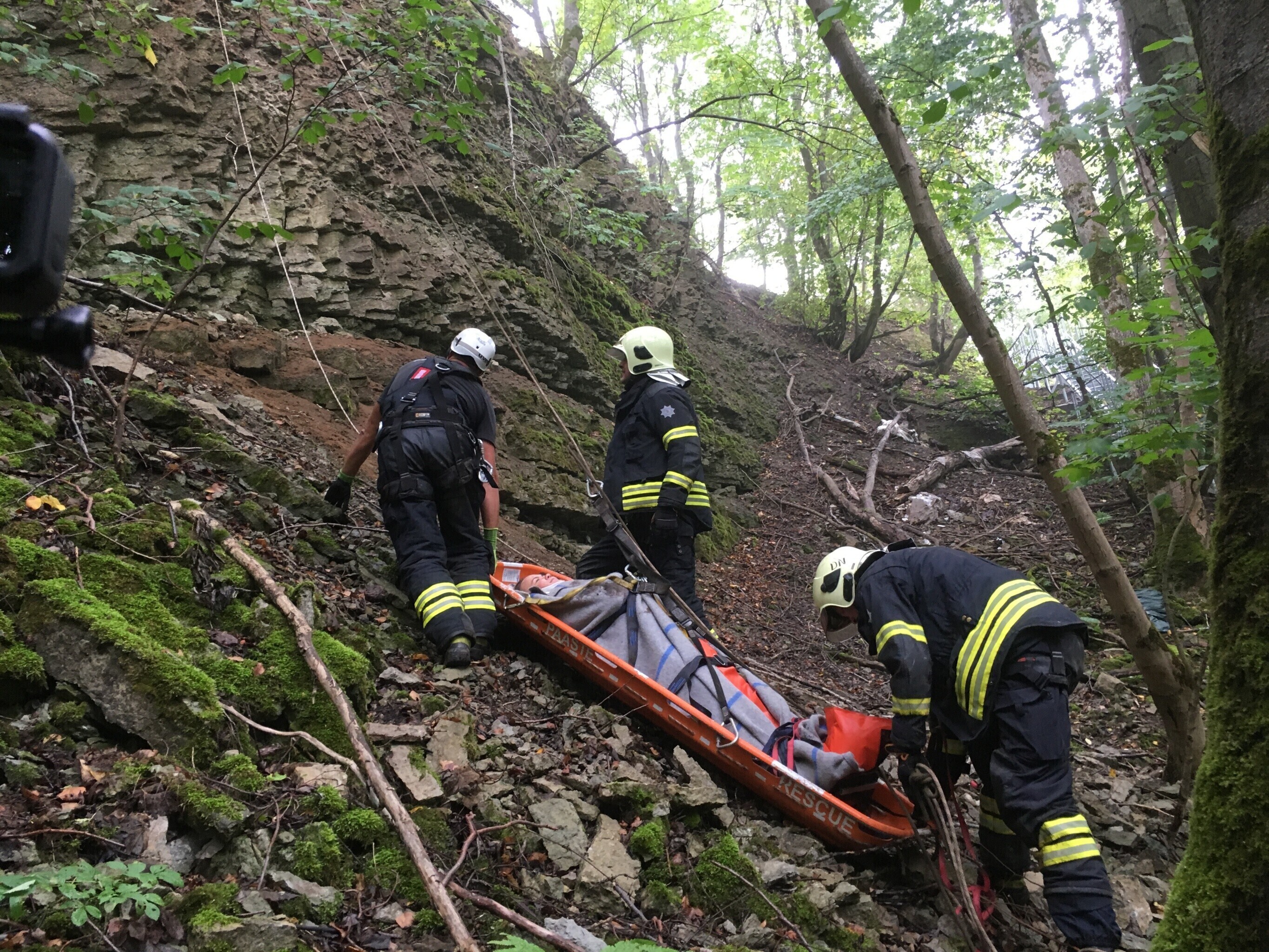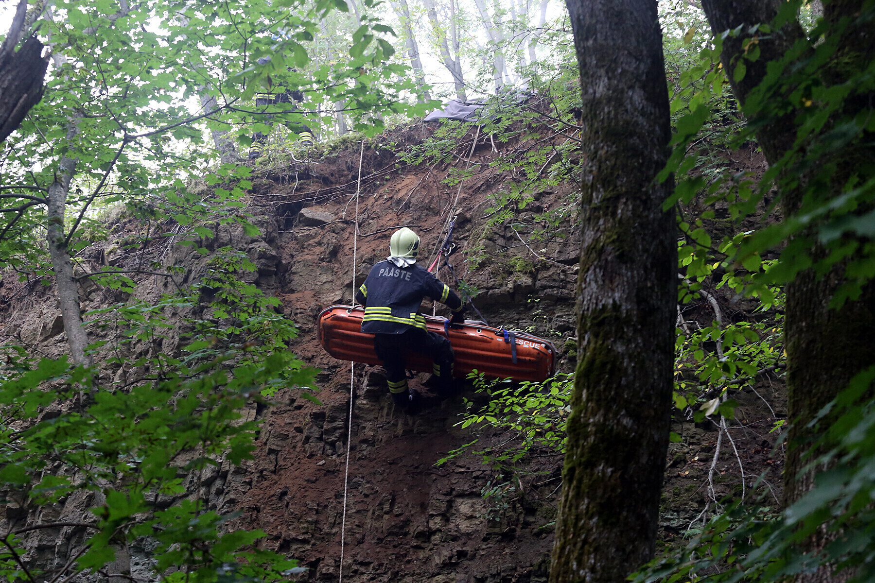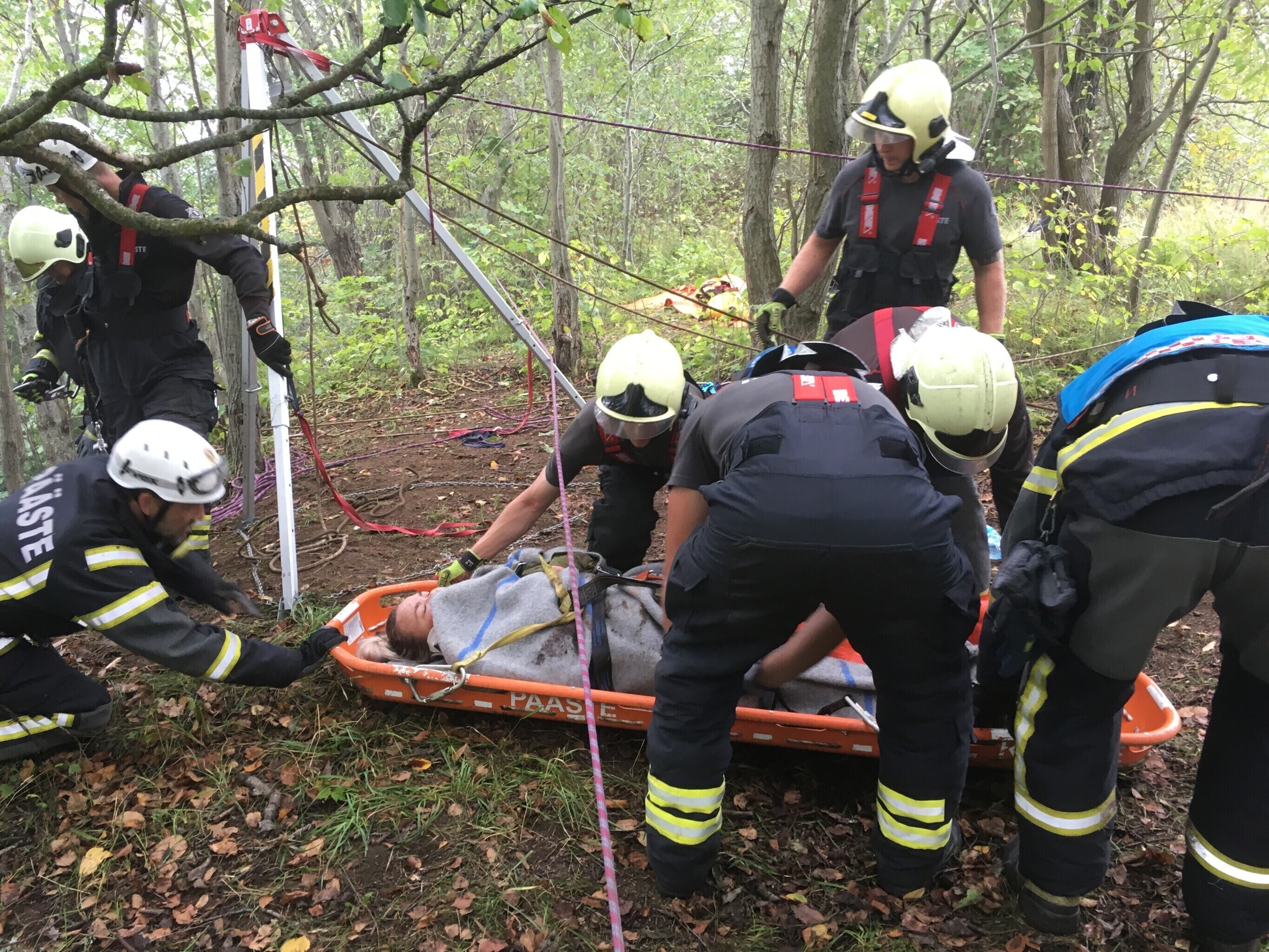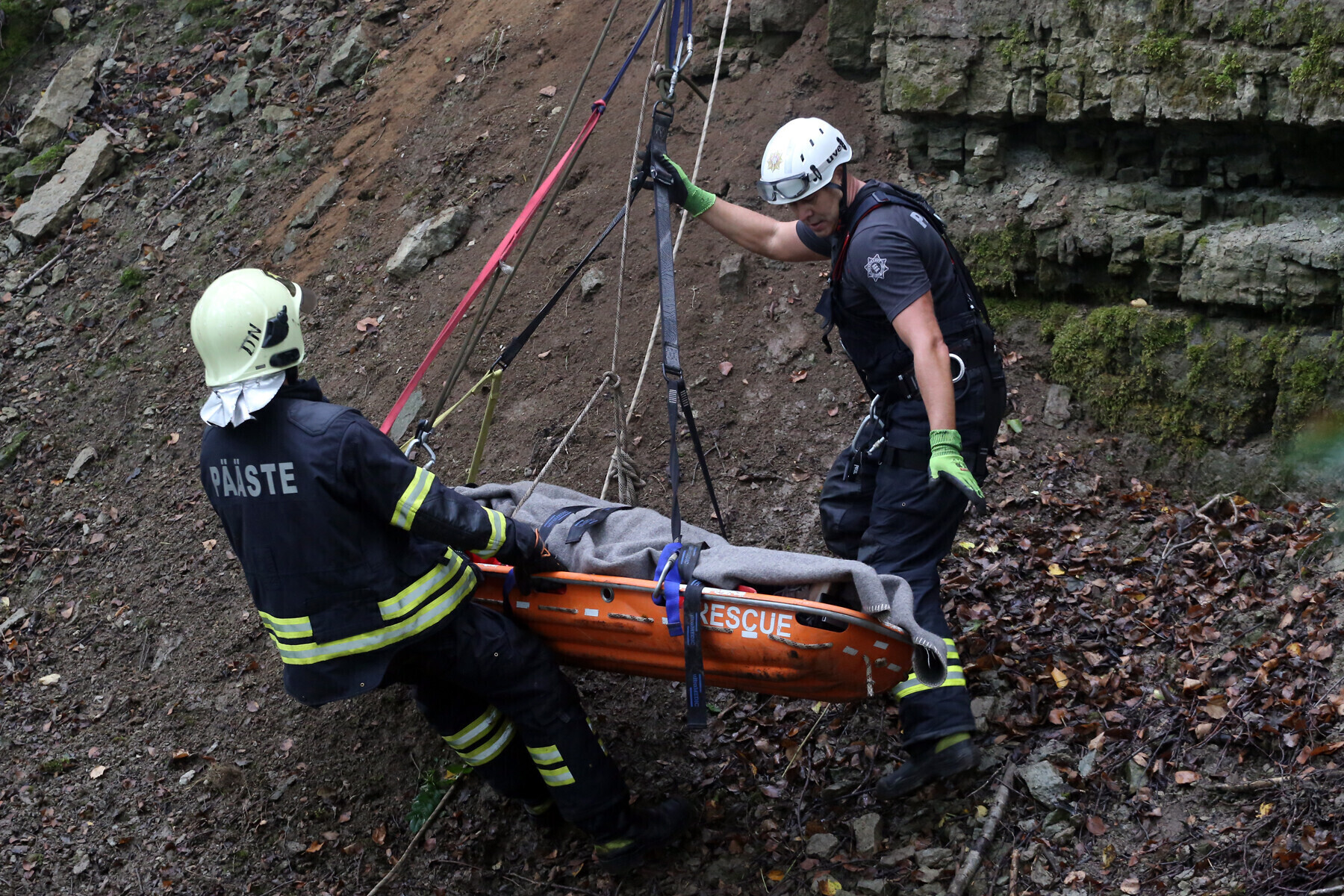 Ida-Virumaal Ontika pangal toimunud päästeõppustel treenisid nöörpäästjad koostöös kiirabiga kuristikku kukkunud inimestele abi andmist.