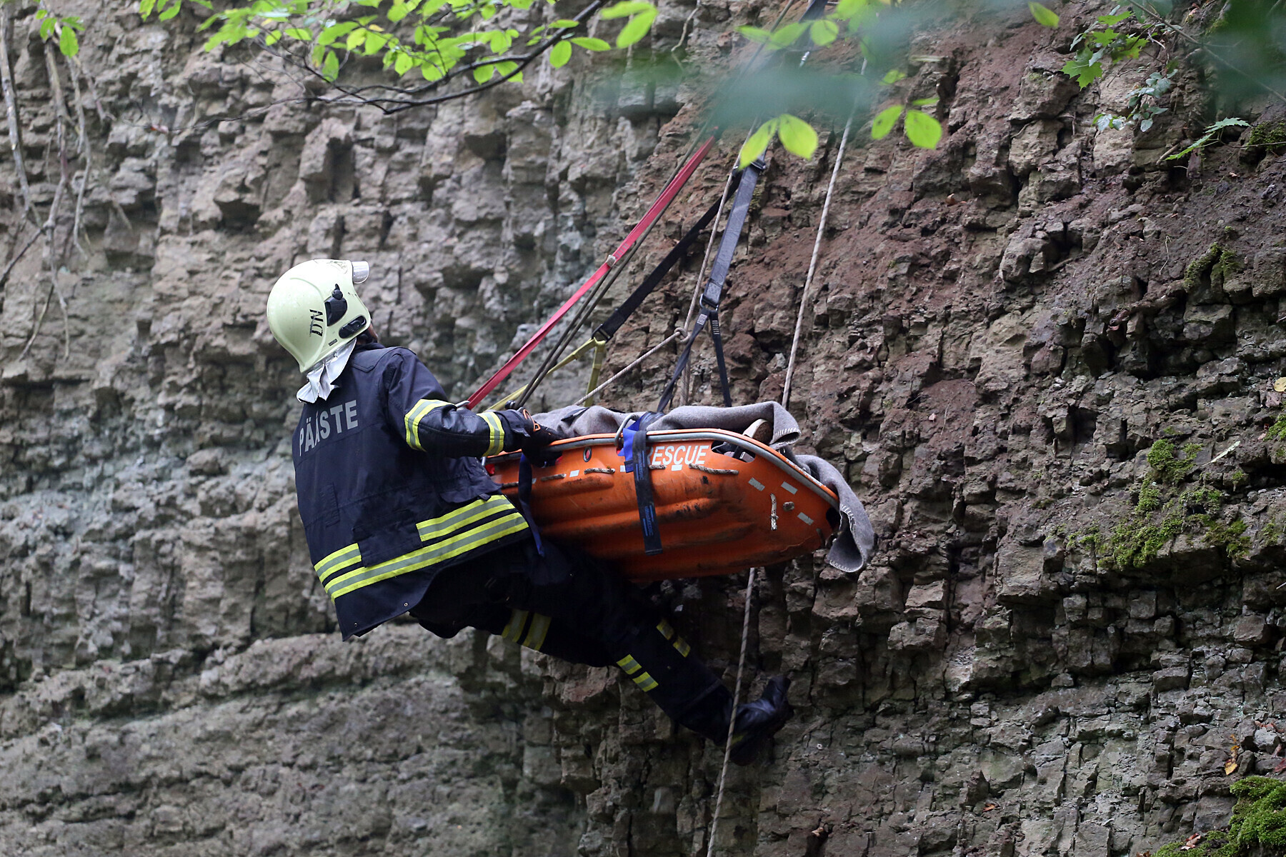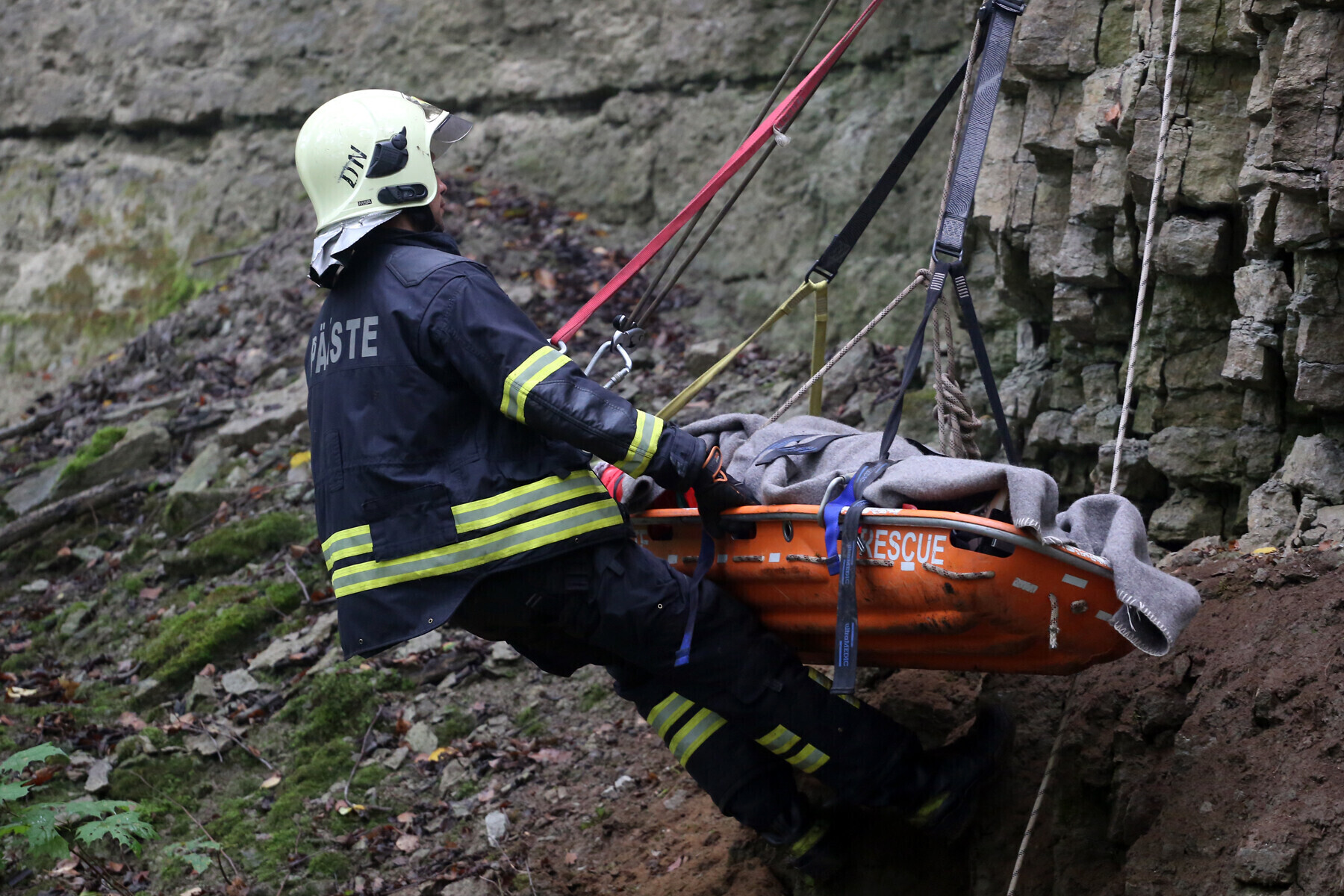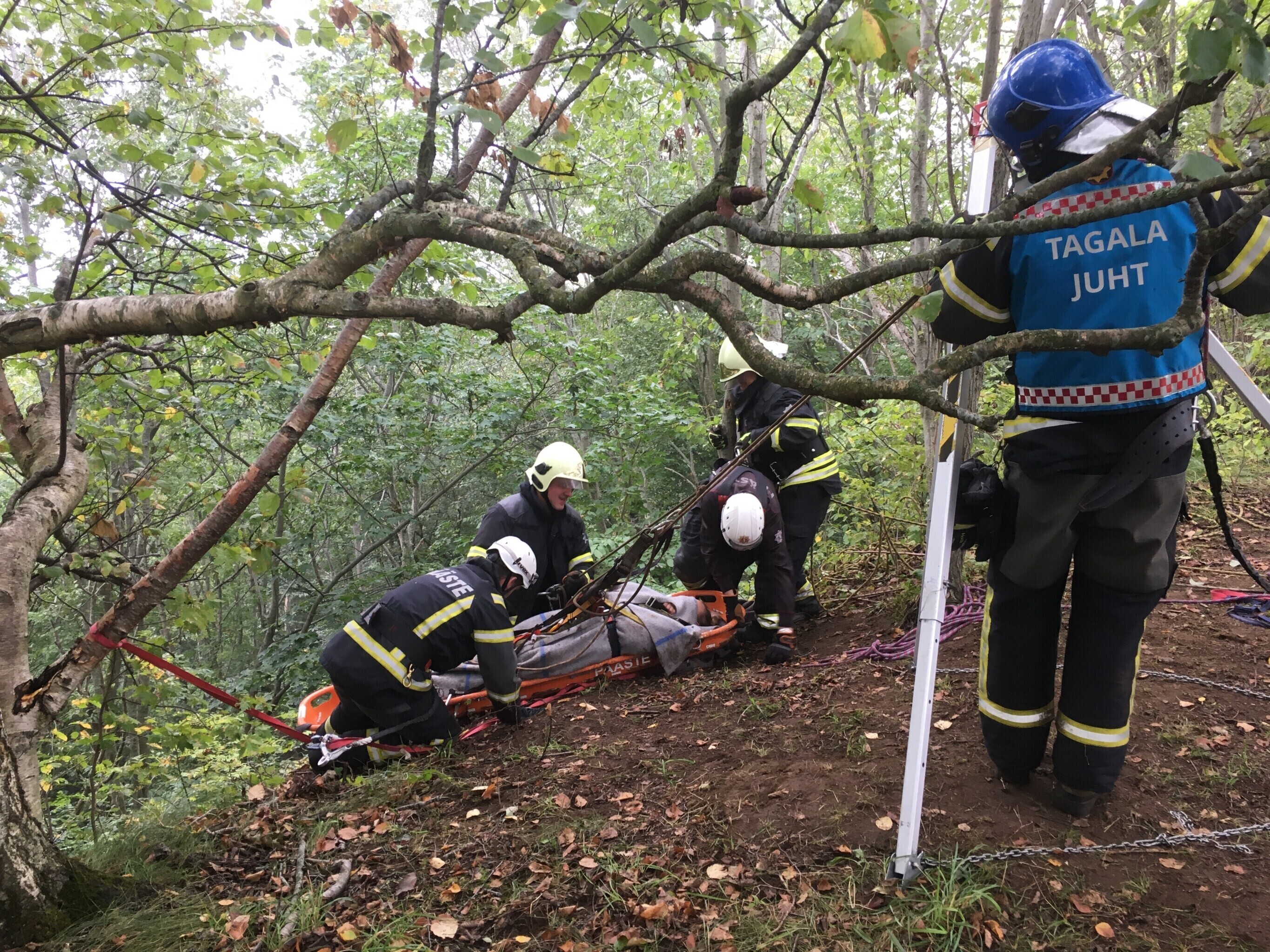 Ida-Virumaal Ontika pangal toimunud päästeõppustel treenisid nöörpäästjad koostöös kiirabiga kuristikku kukkunud inimestele abi andmist.