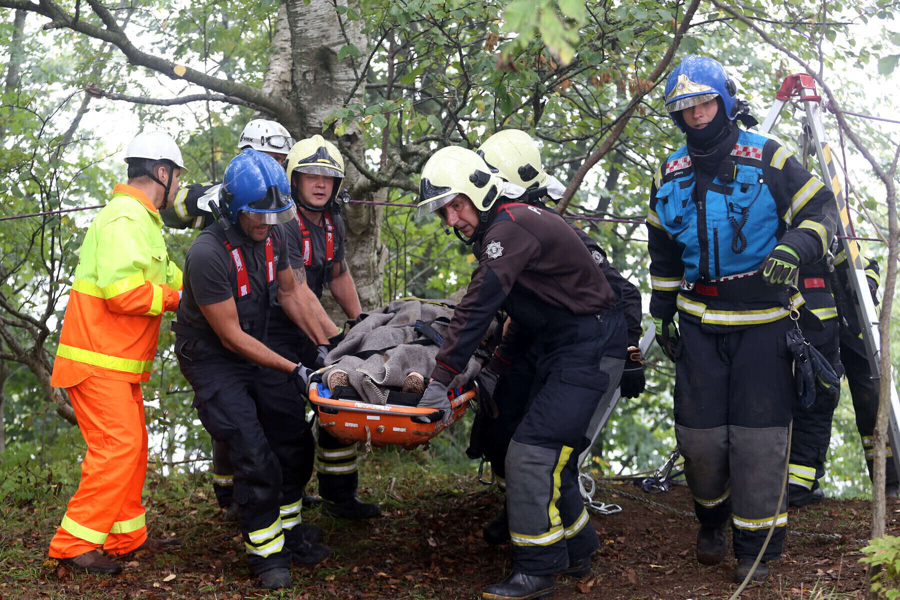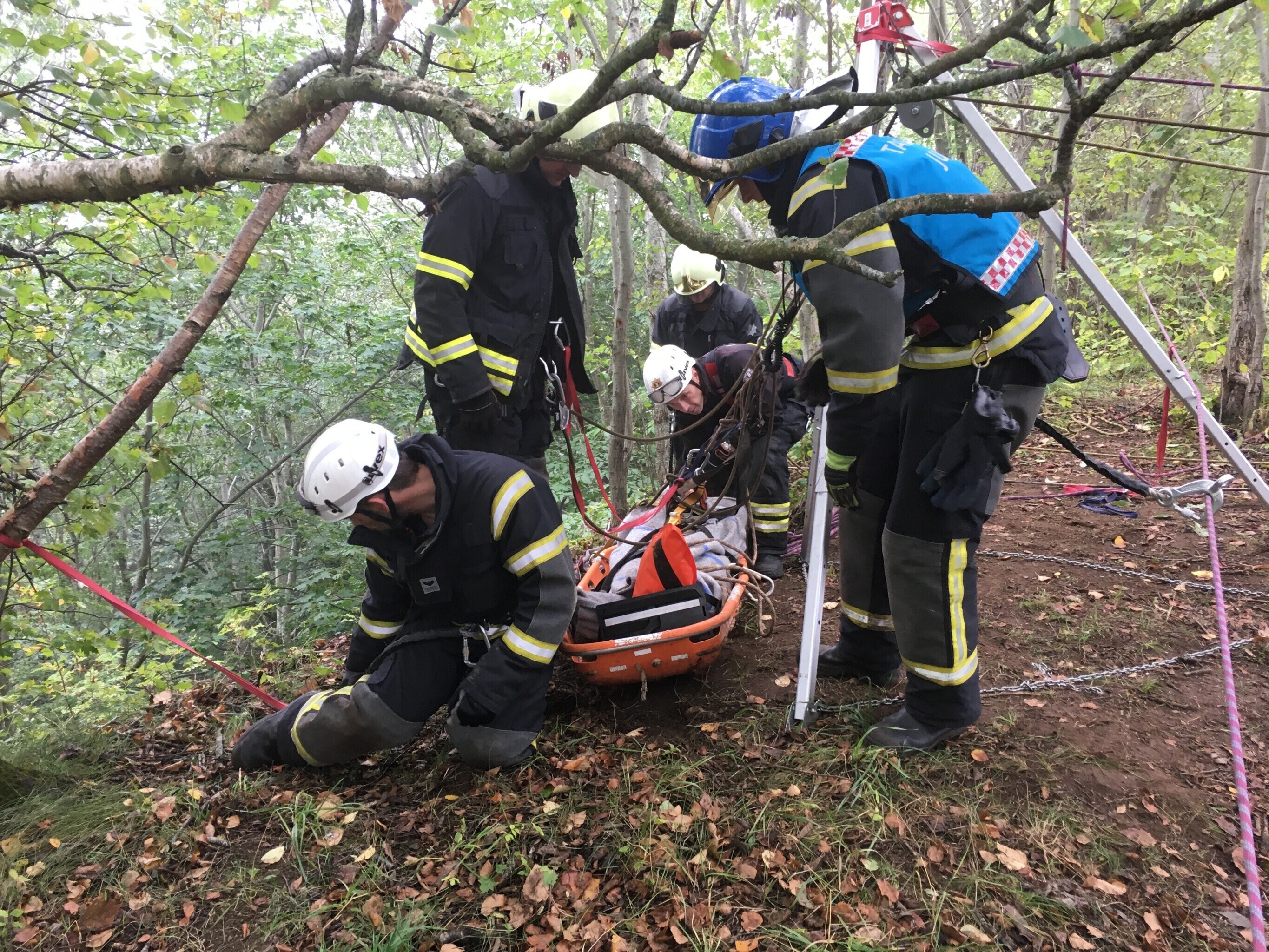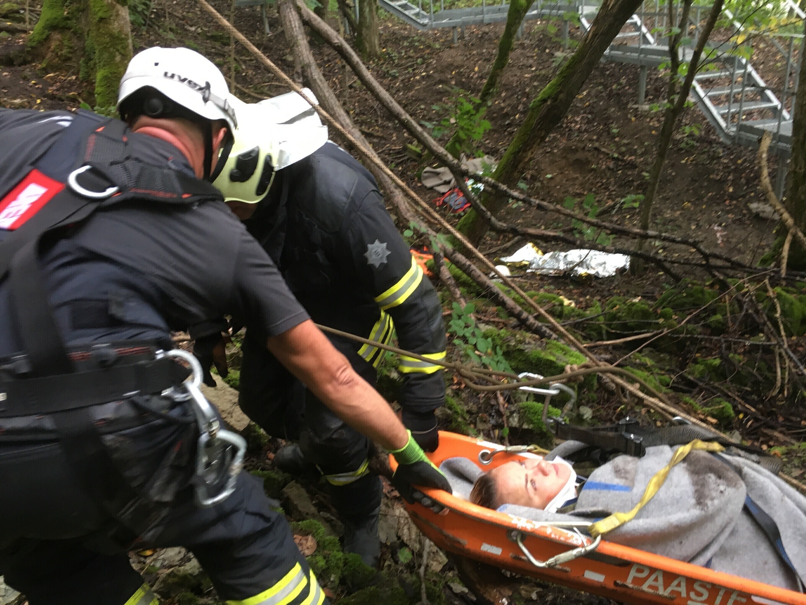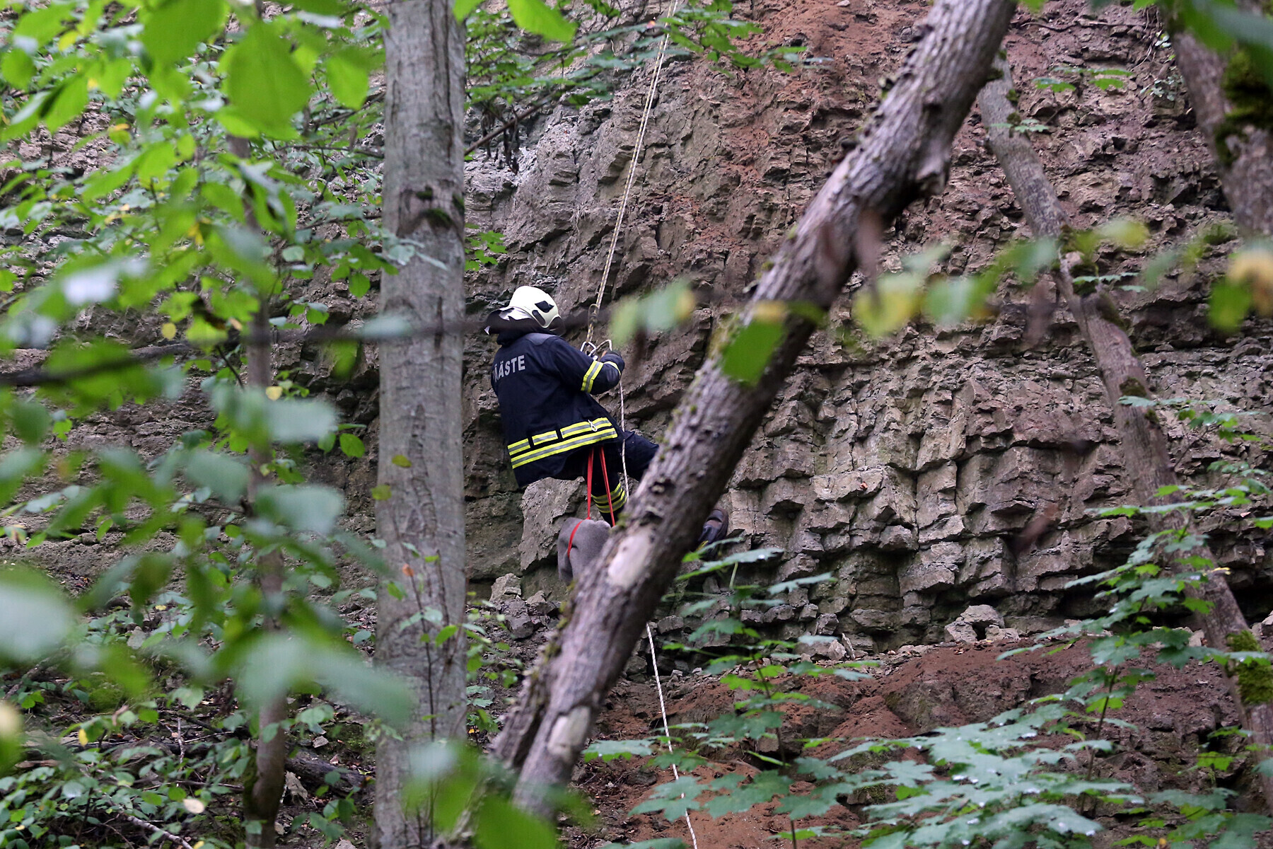 Ida-Virumaal Ontika pangal toimunud päästeõppustel treenisid nöörpäästjad koostöös kiirabiga kuristikku kukkunud inimestele abi andmist.