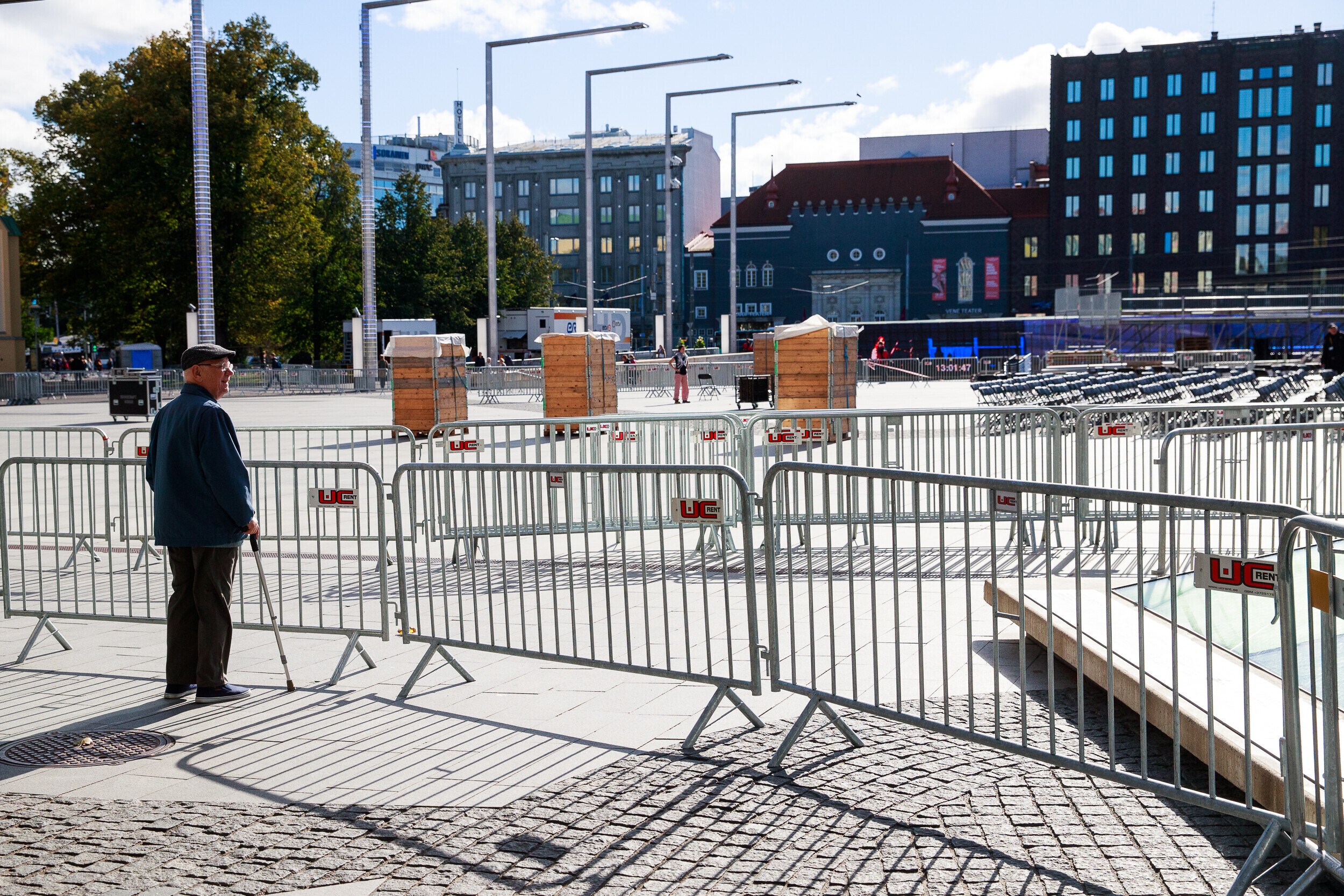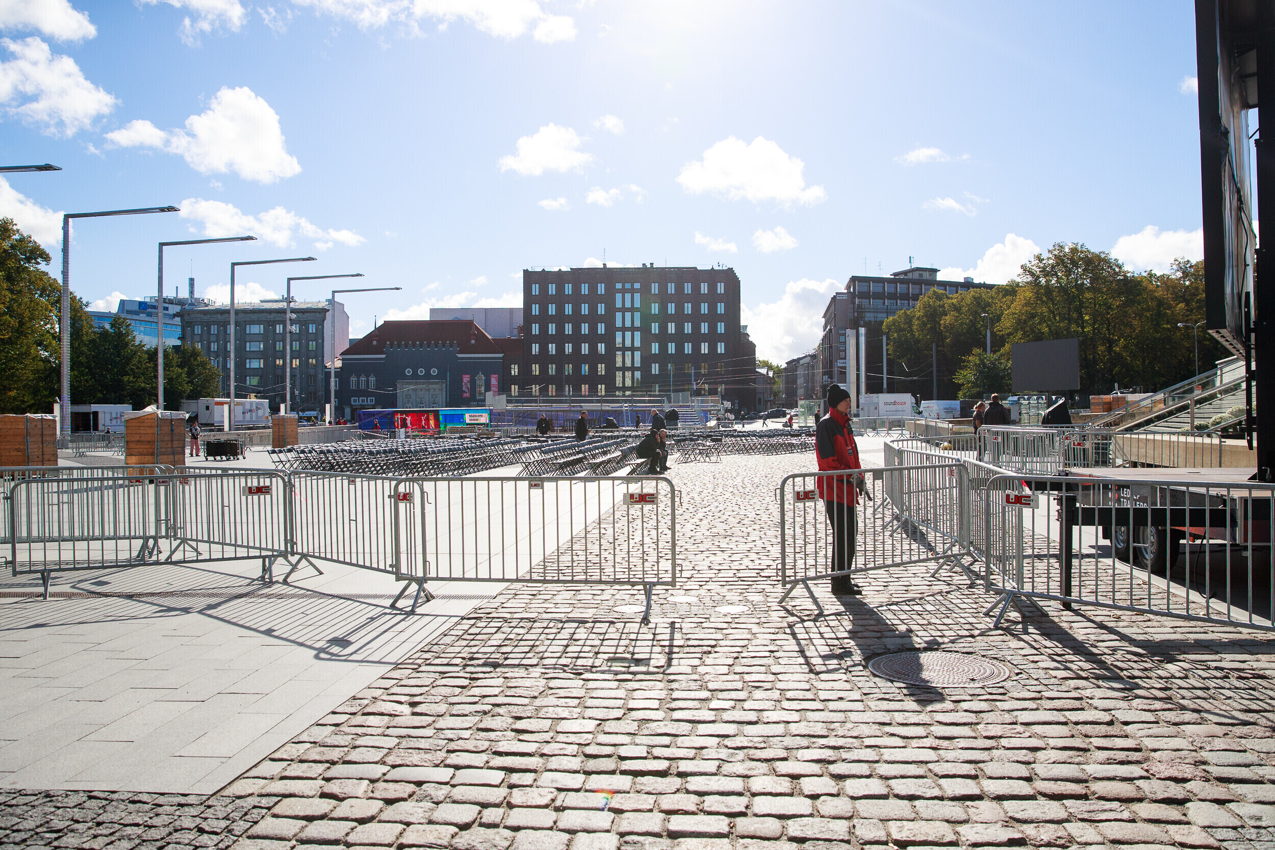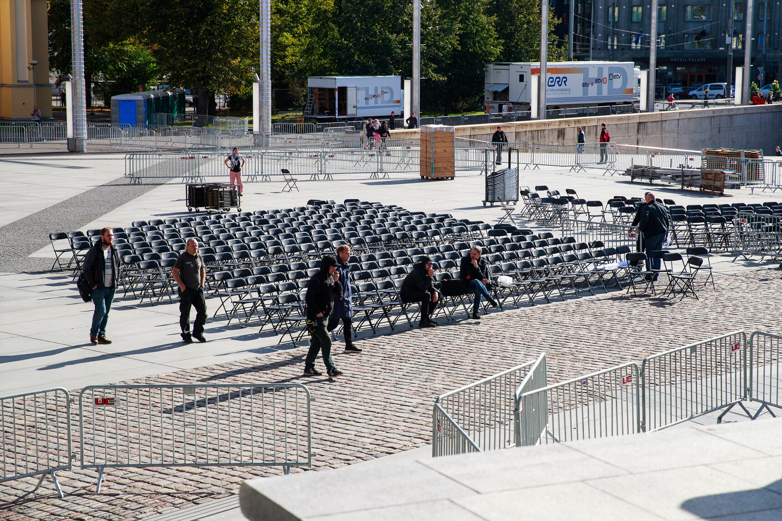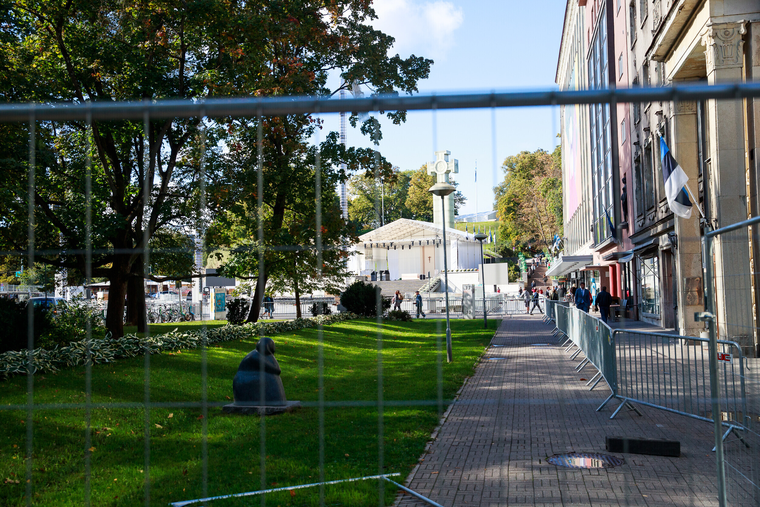 Tallinnas Vabaduse väljakul askeldasid esmaspäeval töömehed, kes seadsid platsi valmis teisipäevaseks paavst Franciscuse külaskäiguks ja pühaks missaks.