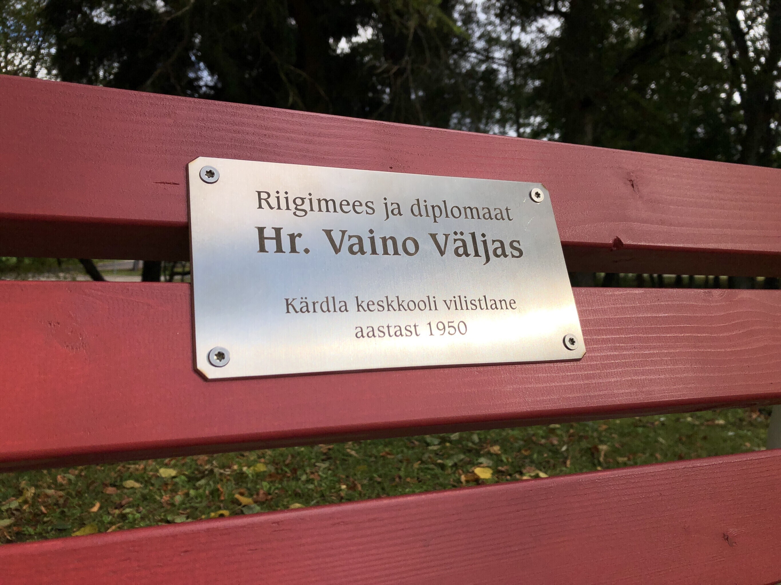 Neljapäeva keskpäeval avati Kärdla vana koolimaja lähistel Vaino Väljase nimeline pink.