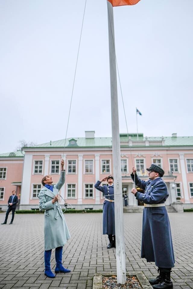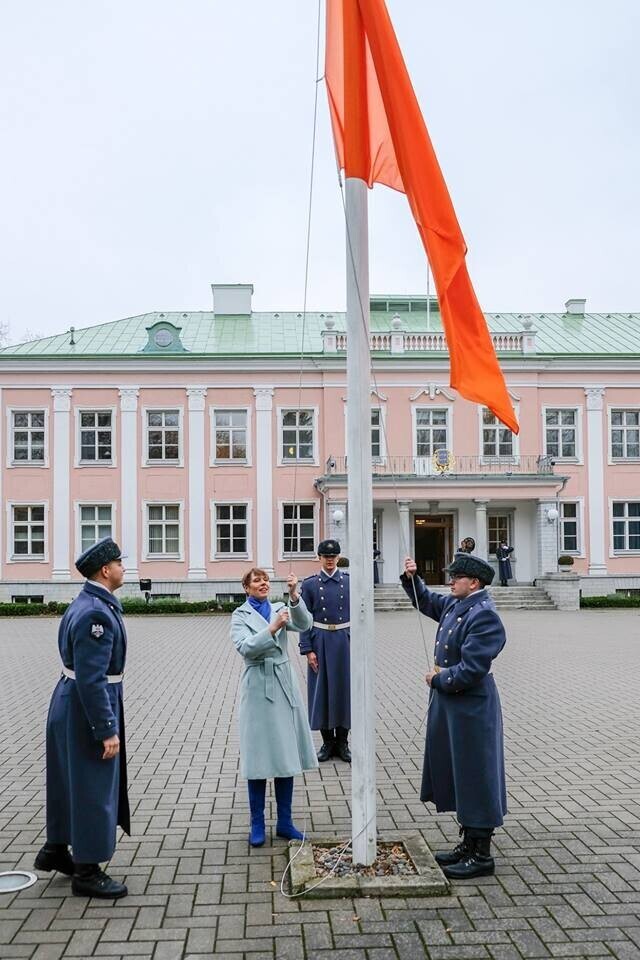 President Kersti Kaljulaid heiskas laupäeval Kadriorus presidendi kantselei ees oranži lipu, et ära märkida naistevastase vägivalla vastu võitlemise päeva, mida tähistatakse pühapäeval.