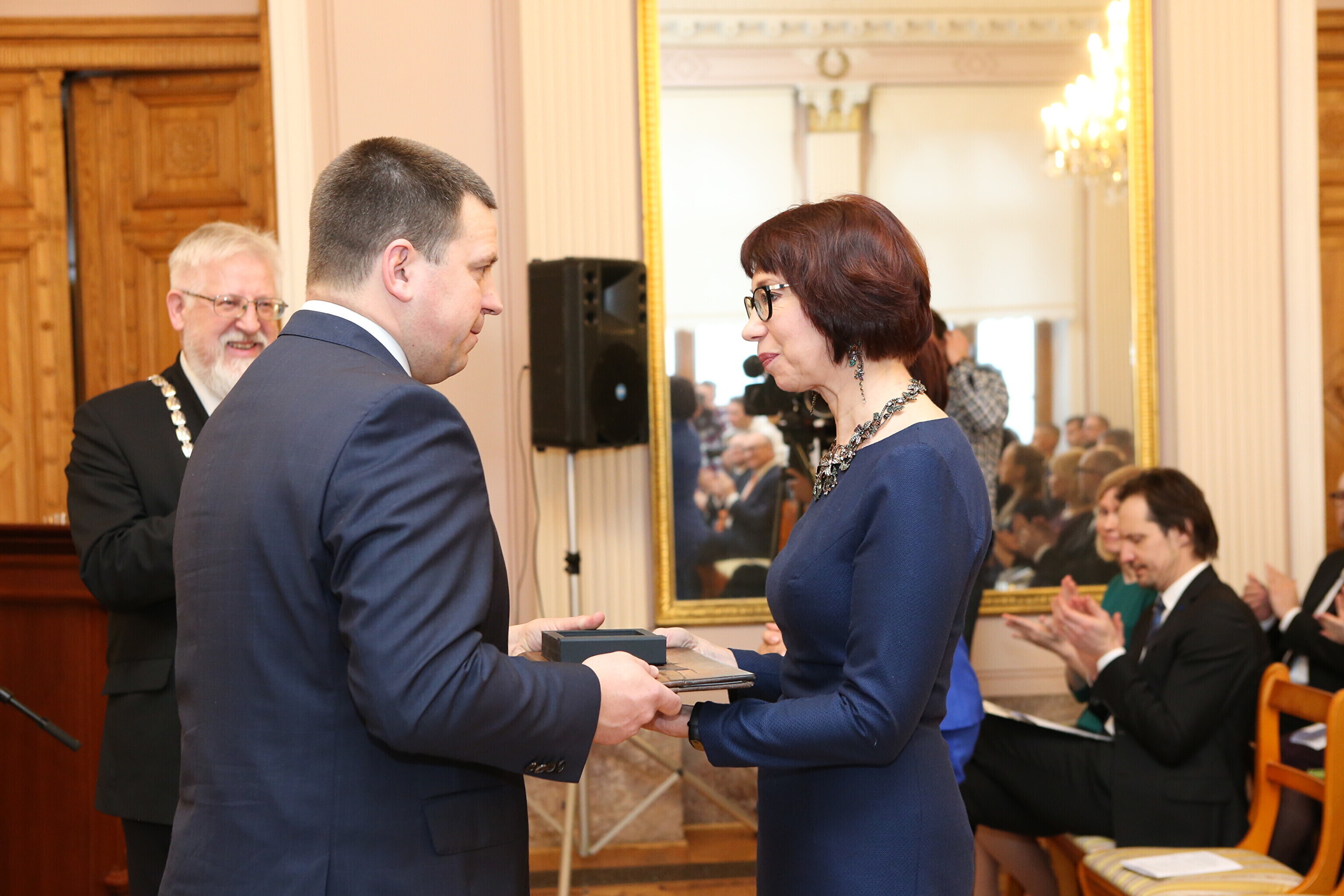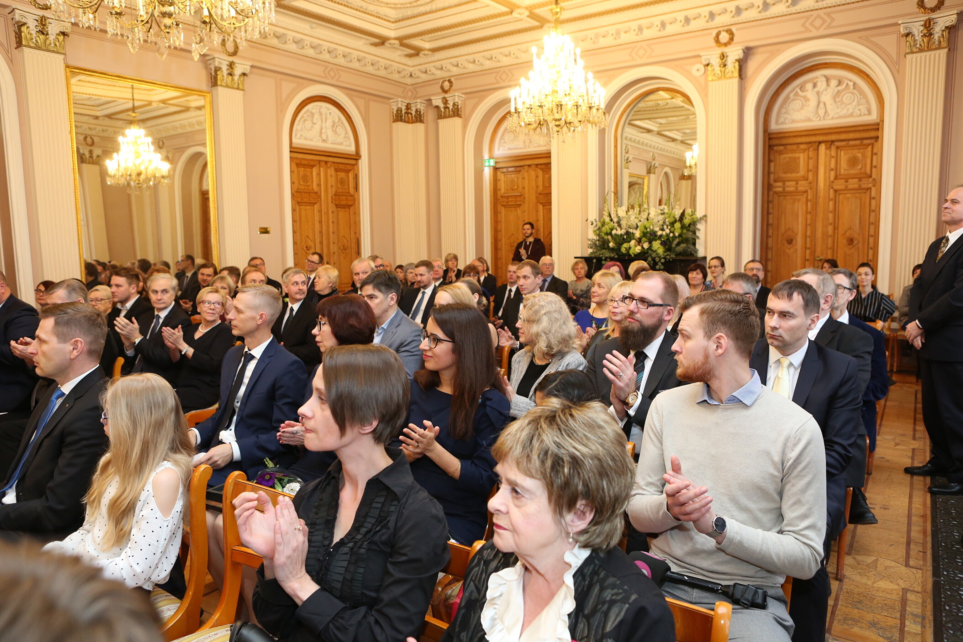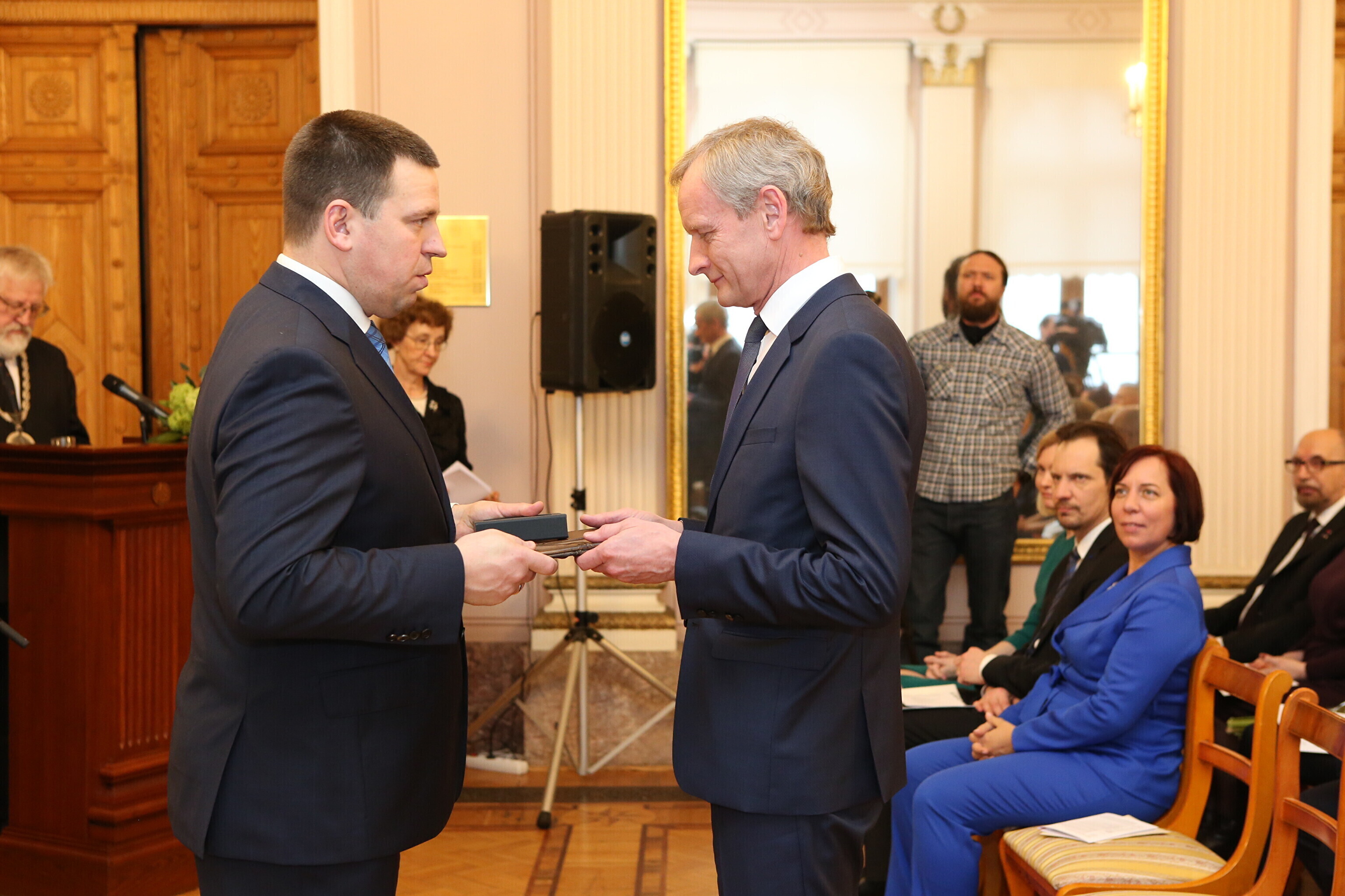 Peaminister Jüri Ratas, haridusminister Mailis Reps ning kultuuriminister Indrek Saar andsid vabariigi aastapäeval Teaduste Akadeemia saalis üle riigi teaduspreemiad, F. J. Wiedemanni keeleauhinna ning spordi- ja kultuuripreemiad.