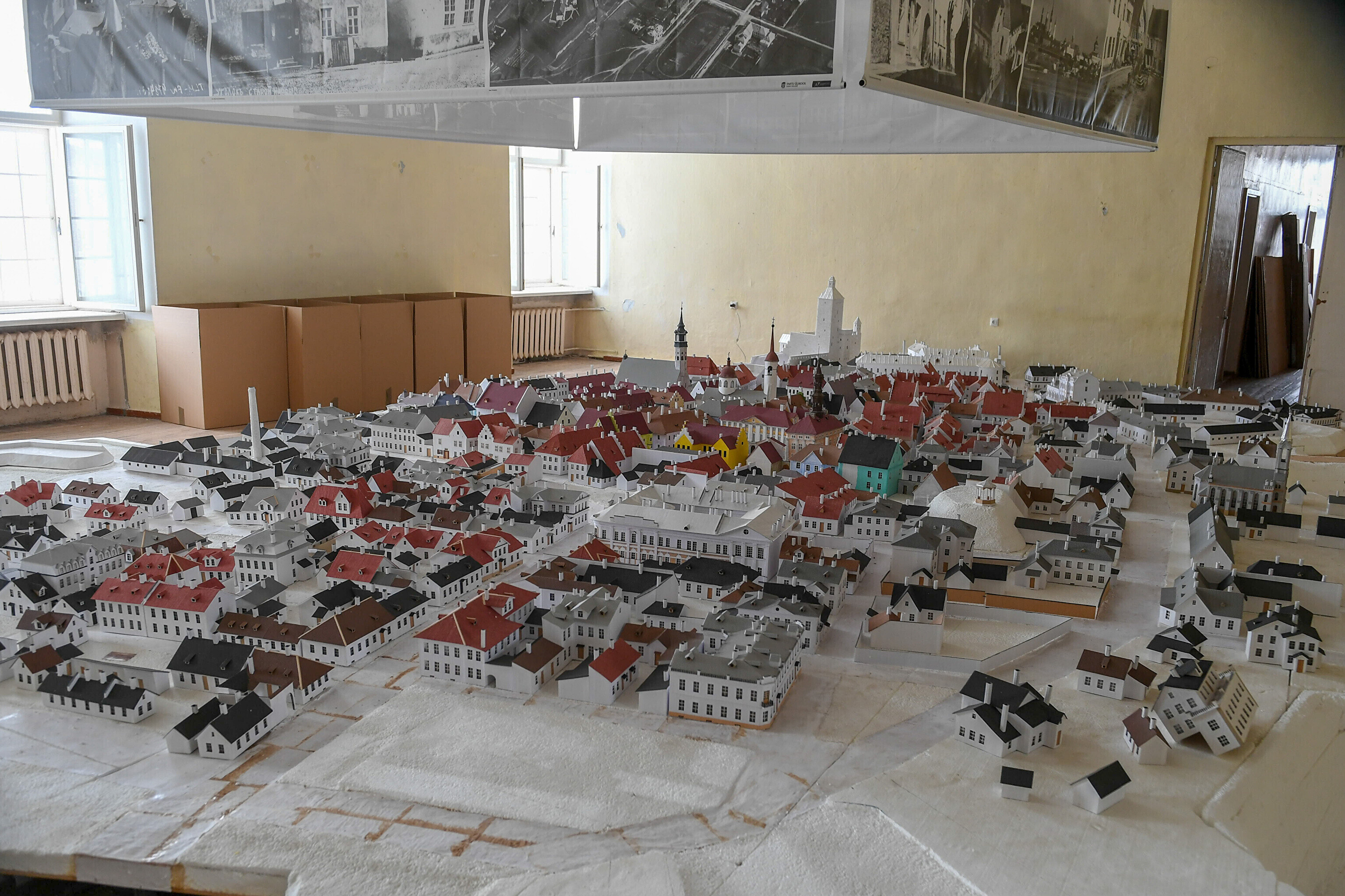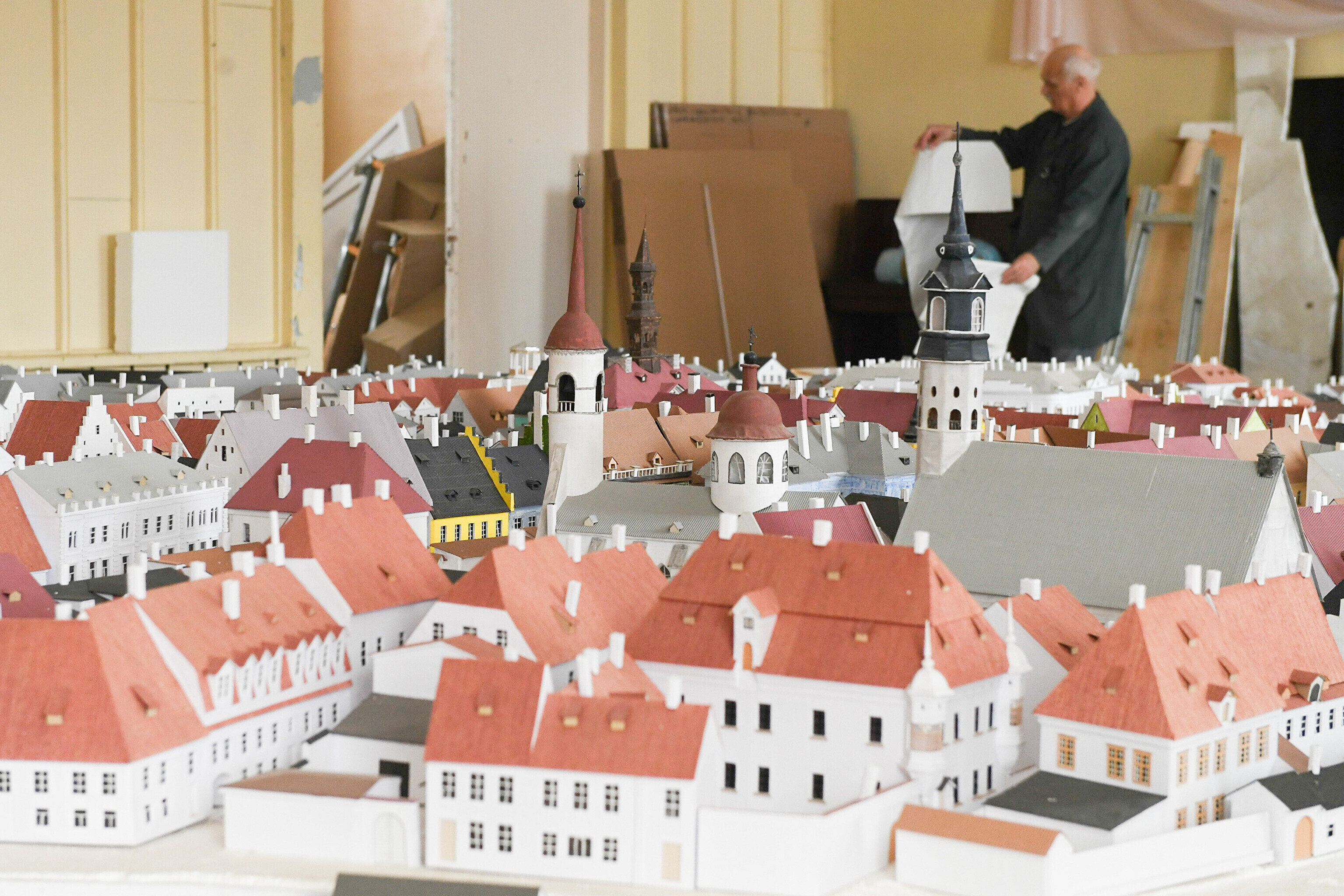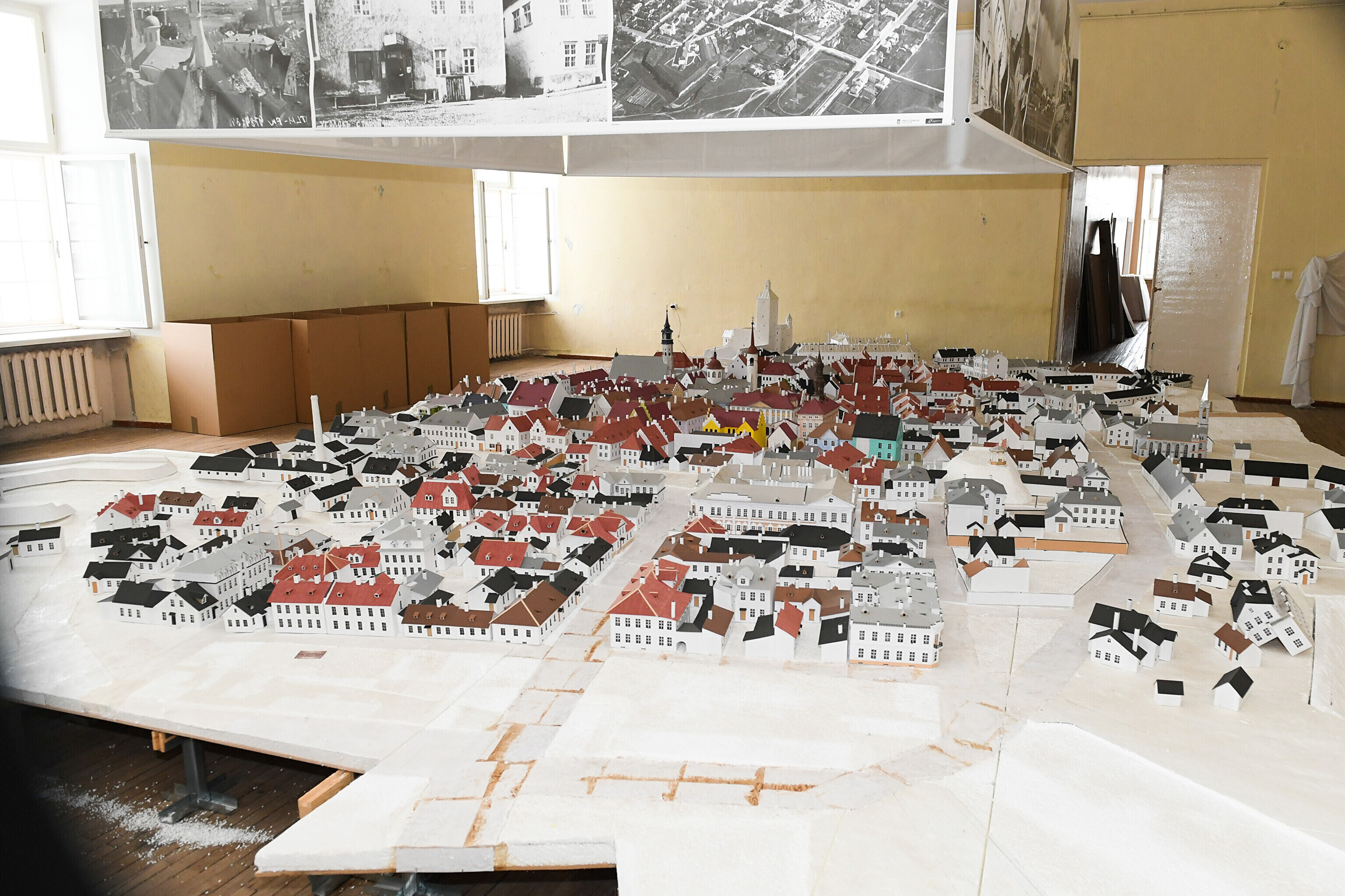 Narva raekojas üles seatud ennesõjaaegse Narva vanalinna maketti asuti kokku pakkima, et see viia hoones algava remondi eest varjule lattu.
