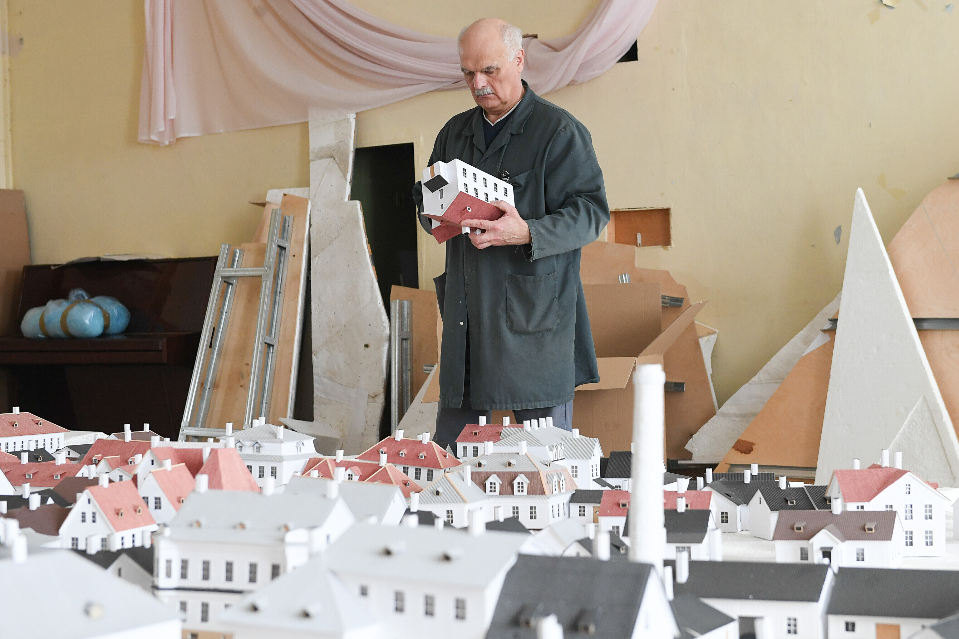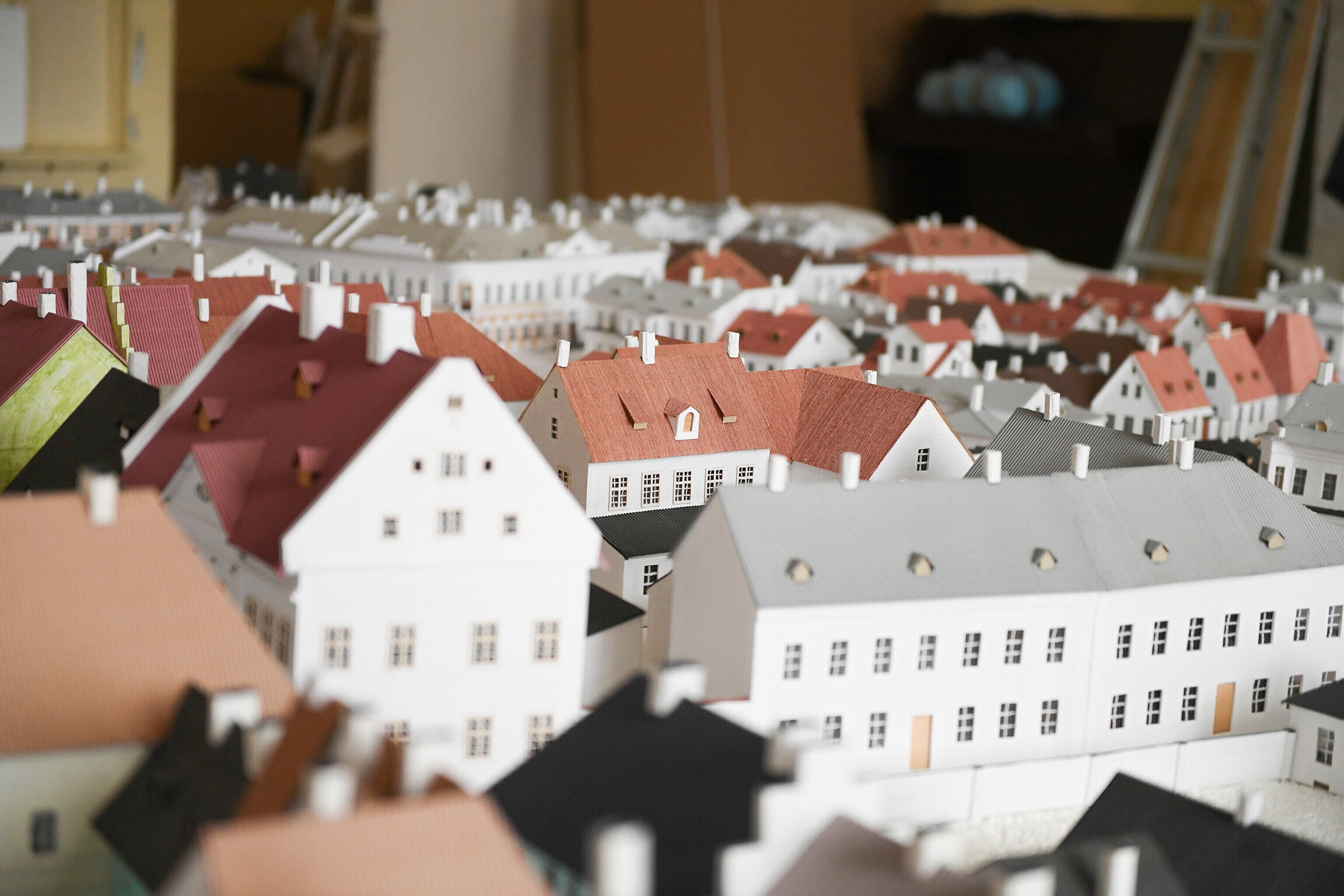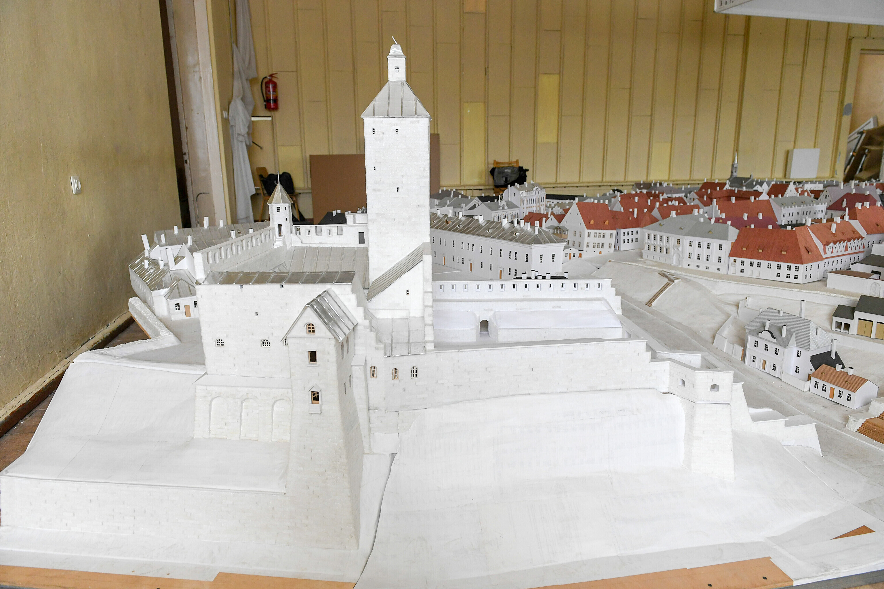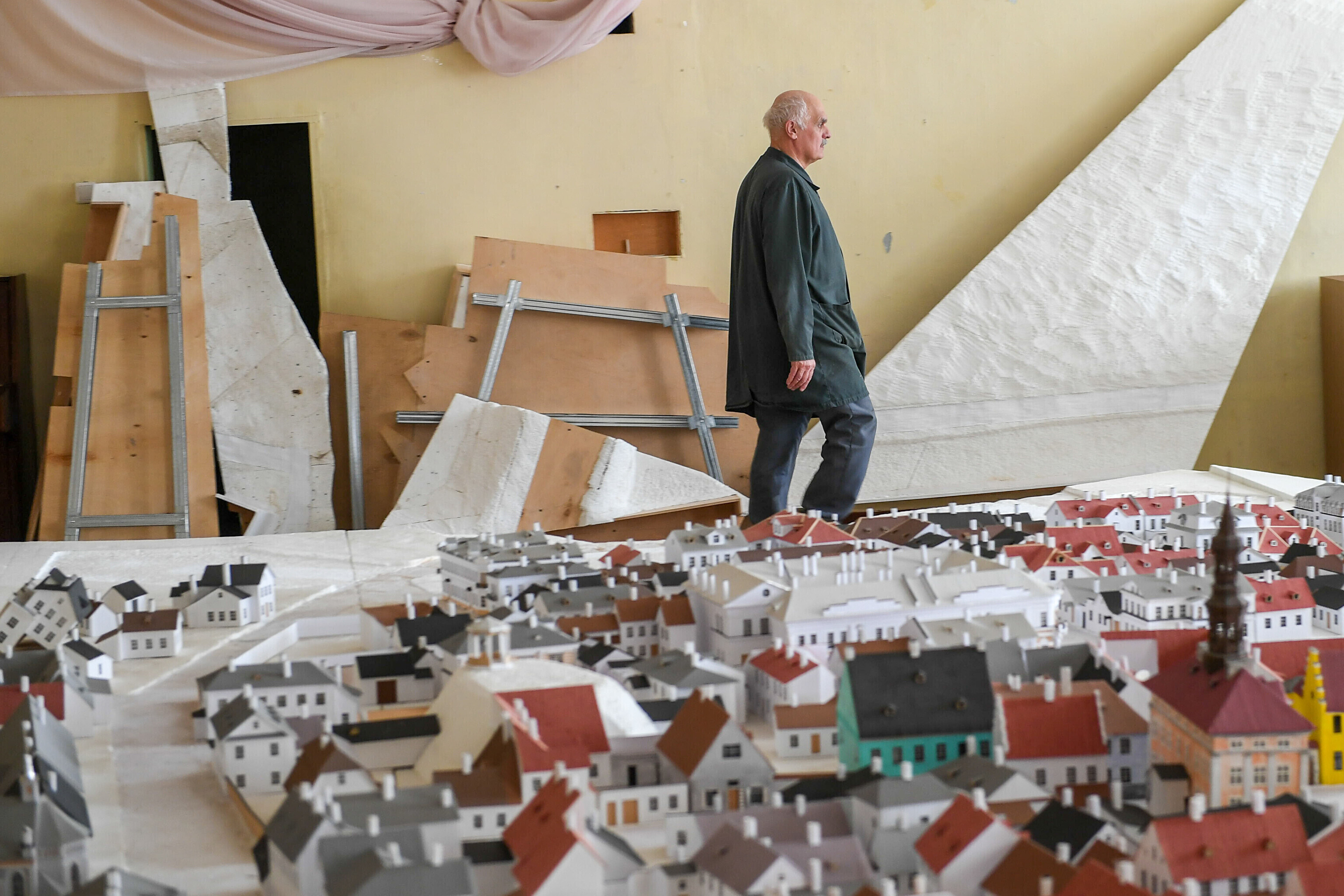 Narva raekojas üles seatud ennesõjaaegse Narva vanalinna maketti asuti kokku pakkima, et see viia hoones algava remondi eest varjule lattu.
