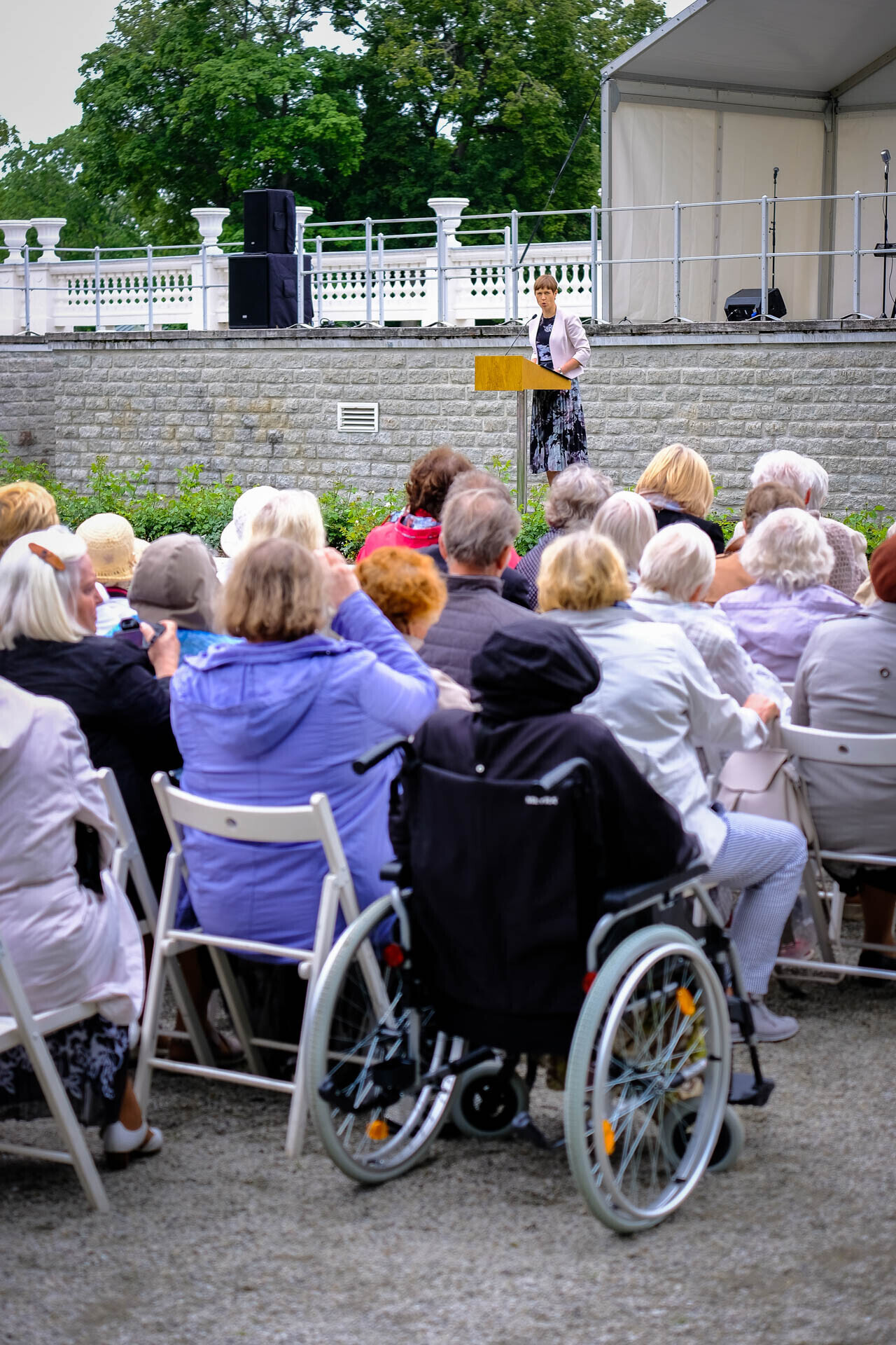 "Keegi ei tohi vabas Eestis olla oma muredega üksi, alati peab olema turvavõrk, koht, kuhu helistada ja kellega oma muresid jagada. Teil seda võimalust ei olnud, aga vabas riigis see on. Täna on kõigil Eesti inimestel põhjust loota õiguskaitseorganitele selleks, et aidata kaitsta oma enda isiklikke vabadusi. Oma enda vabadust tunda rõõmu ja elada hirmuta. On lihtne luua ka ise orwellikku maailma ja mõnikord mõne suure ja ülla idee nimel pisut oma vabadusi ära anda. Seni kui meie hulgas olete teie, me teame, et seda ei tohi," nentis riigipea.