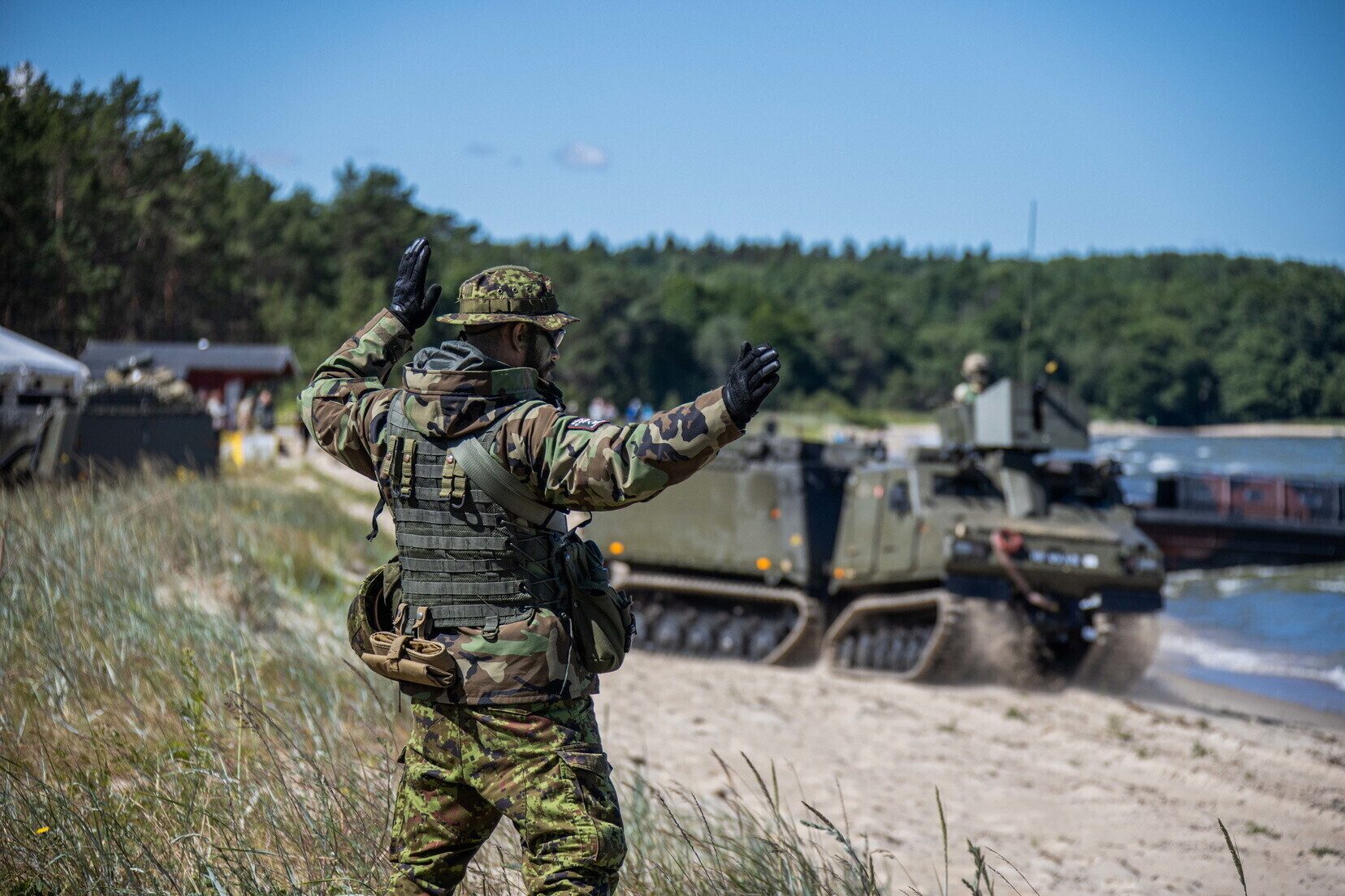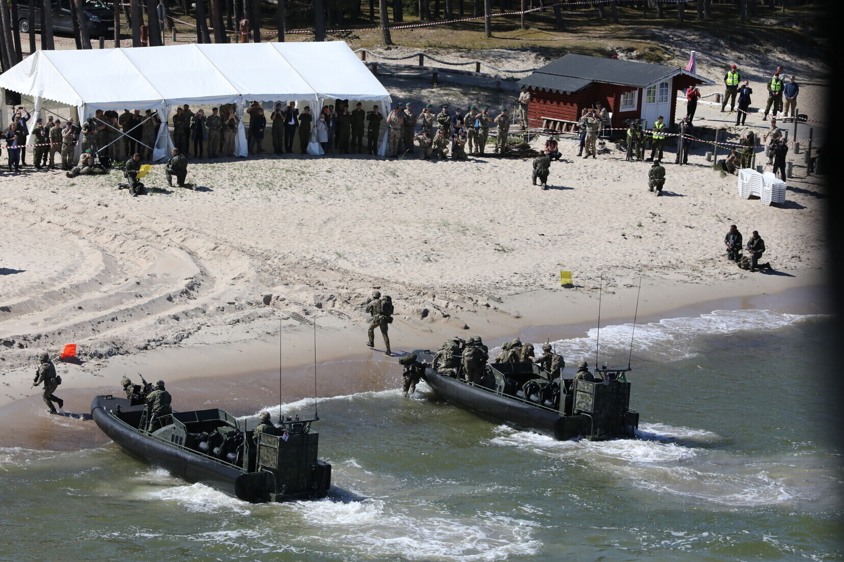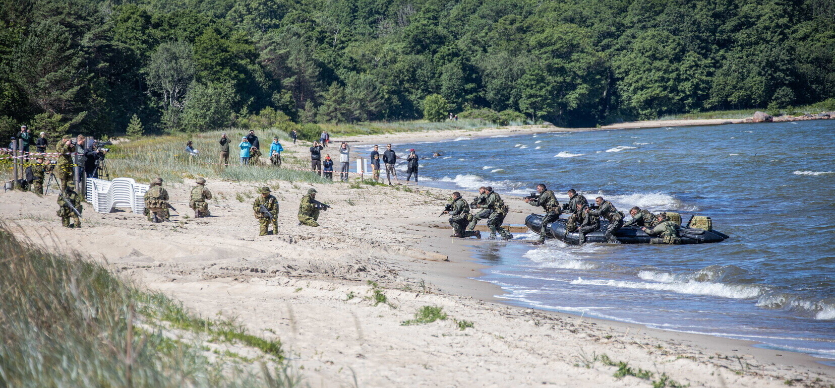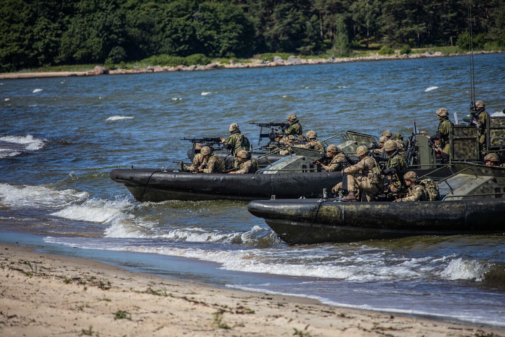 Üheksa riigi ühisõppusel Baltic Protector harjutati Eesti kaitsmiseks saabunud liitlasüksuste meritsi vastuvõtmist Kolga lahelt Valkla randa.