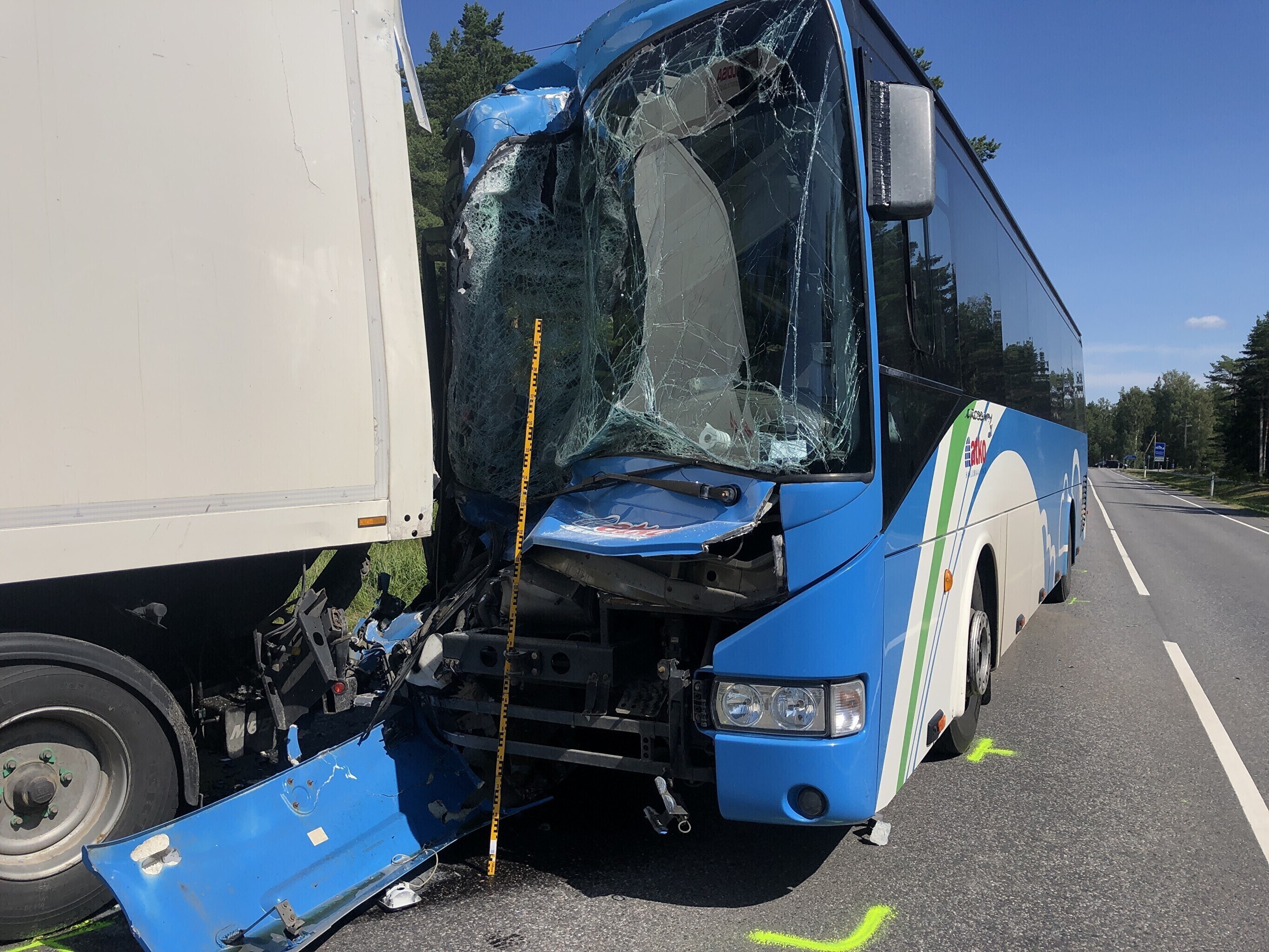 Liinibussi ja veoki kokkupõrkes sai 26 inimest vigastada