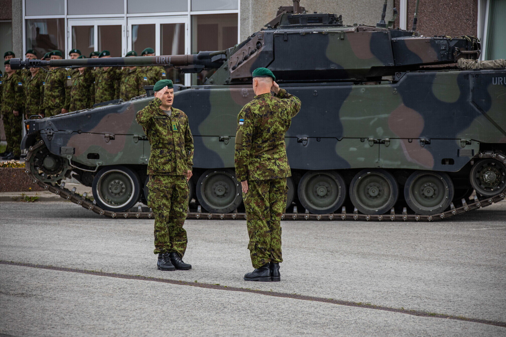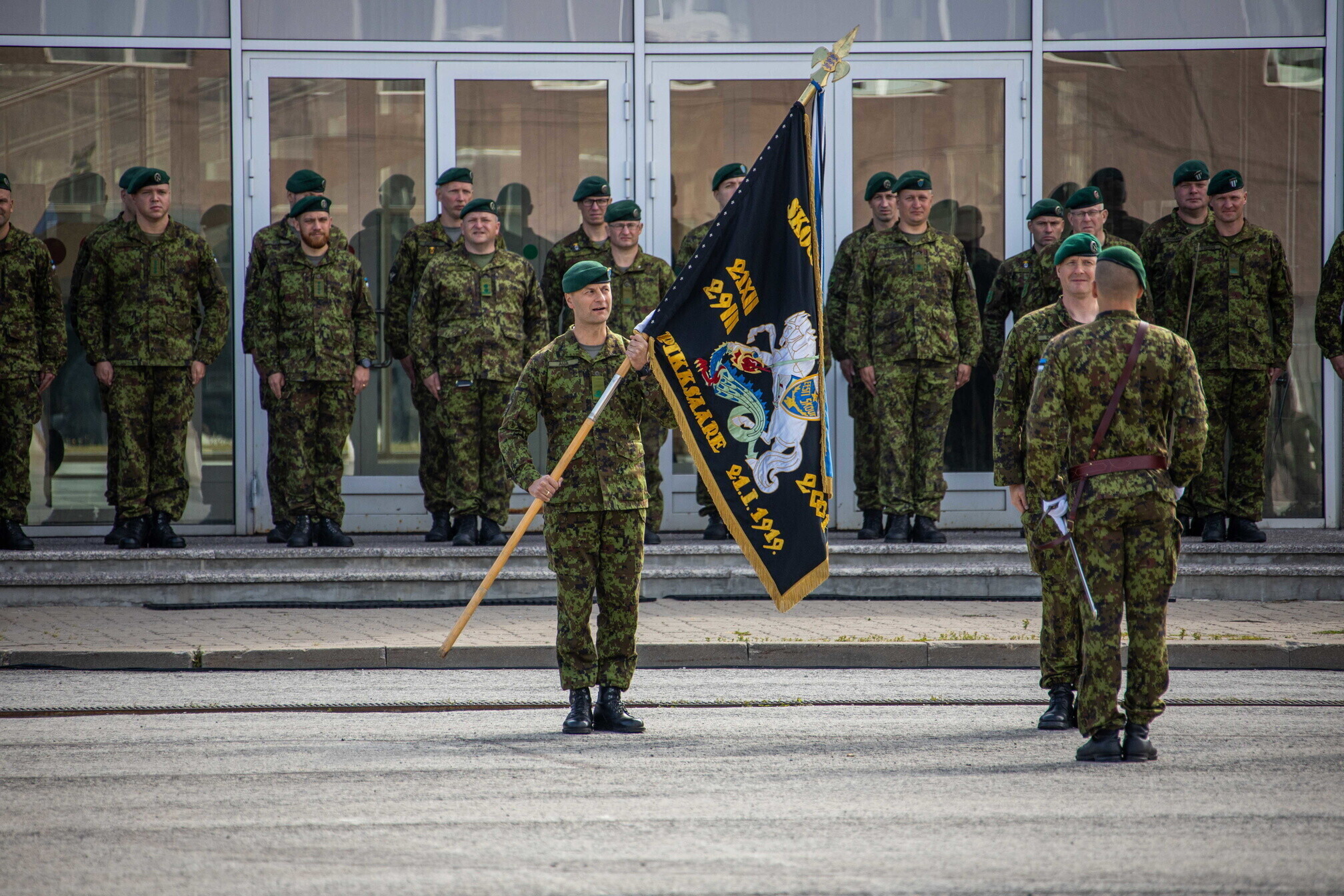 Kolonelleitnant Tarmo Kundla andis neljapäeval 1. jalaväebrigaadi Tapa linnakus toimunud pidulikul tseremoonial Scoutspataljoni juhtimise üle major Eero Aijale.