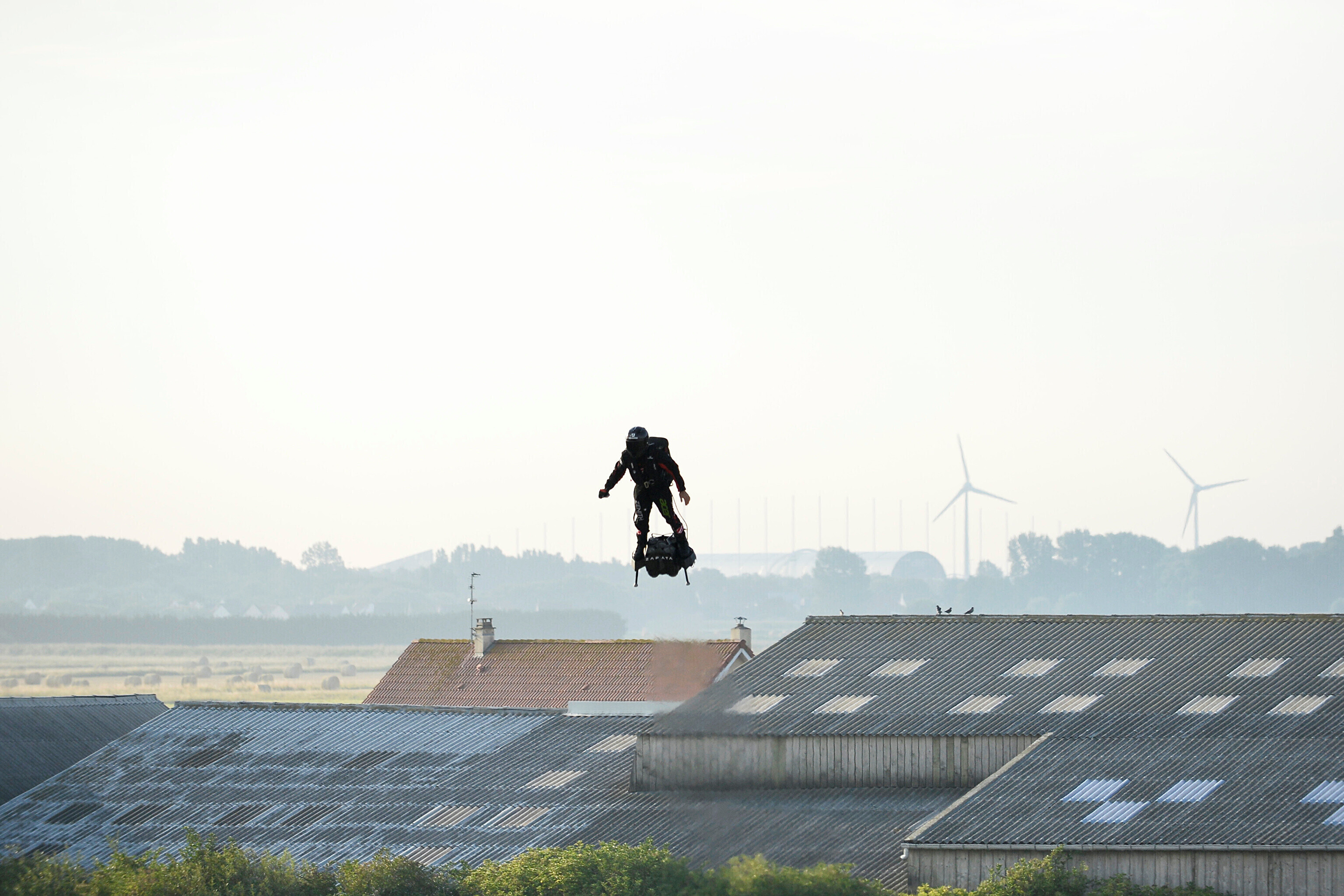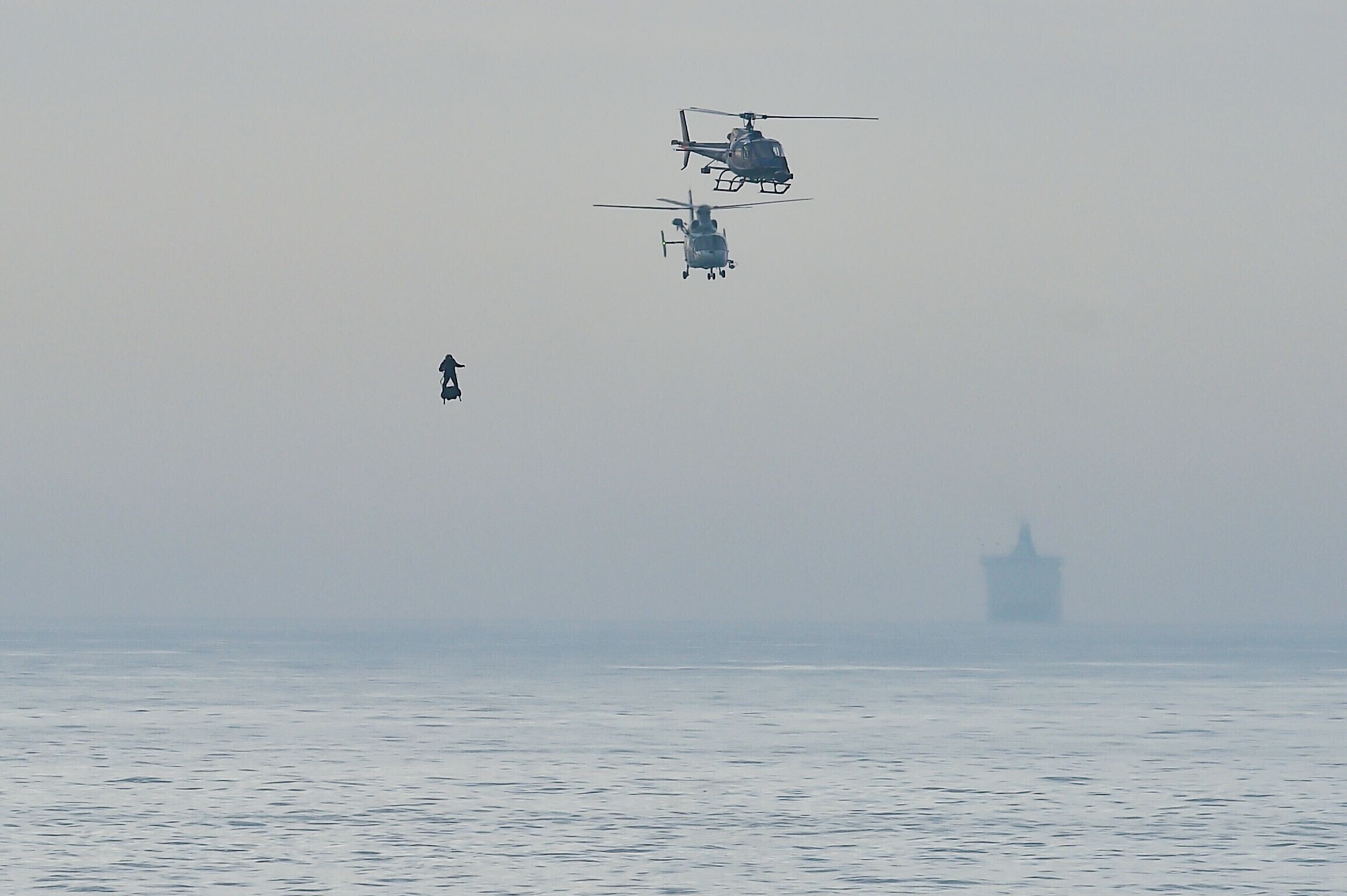 Prantsuse leiutaja Franky Zapata (40) sõitis pühapäeval hõljuklaua ehk flyboardiga üle La Manche'i väina Inglismaa lõunarannikule.