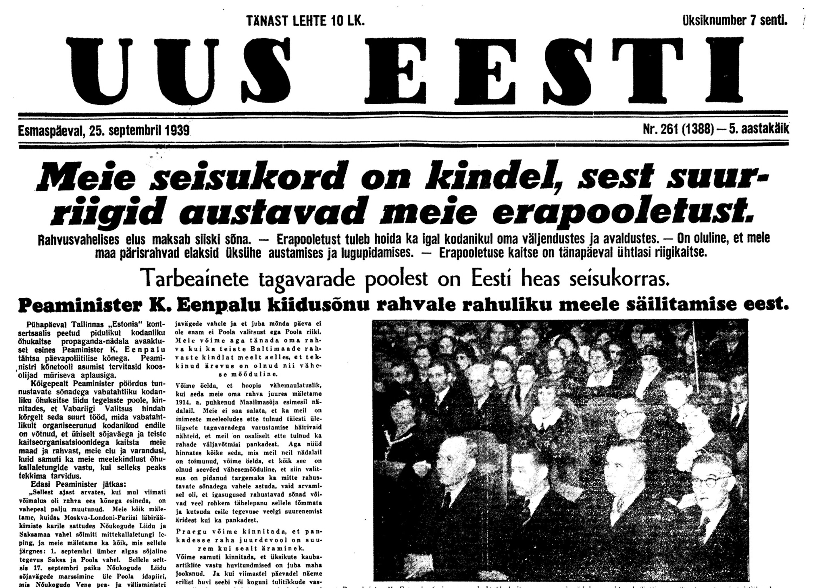 25. sept. Vab.[ariigi] Val.[itsuse] koosolek kell 4. On teada, et [välisminister Karl] Selter Moskvast tagasi sõitnud, kuna venelased seadvat uusi nõudmisi. See häirib, kuid ei tea, milles seisab asi. Koosolek lõpeb kell 6.