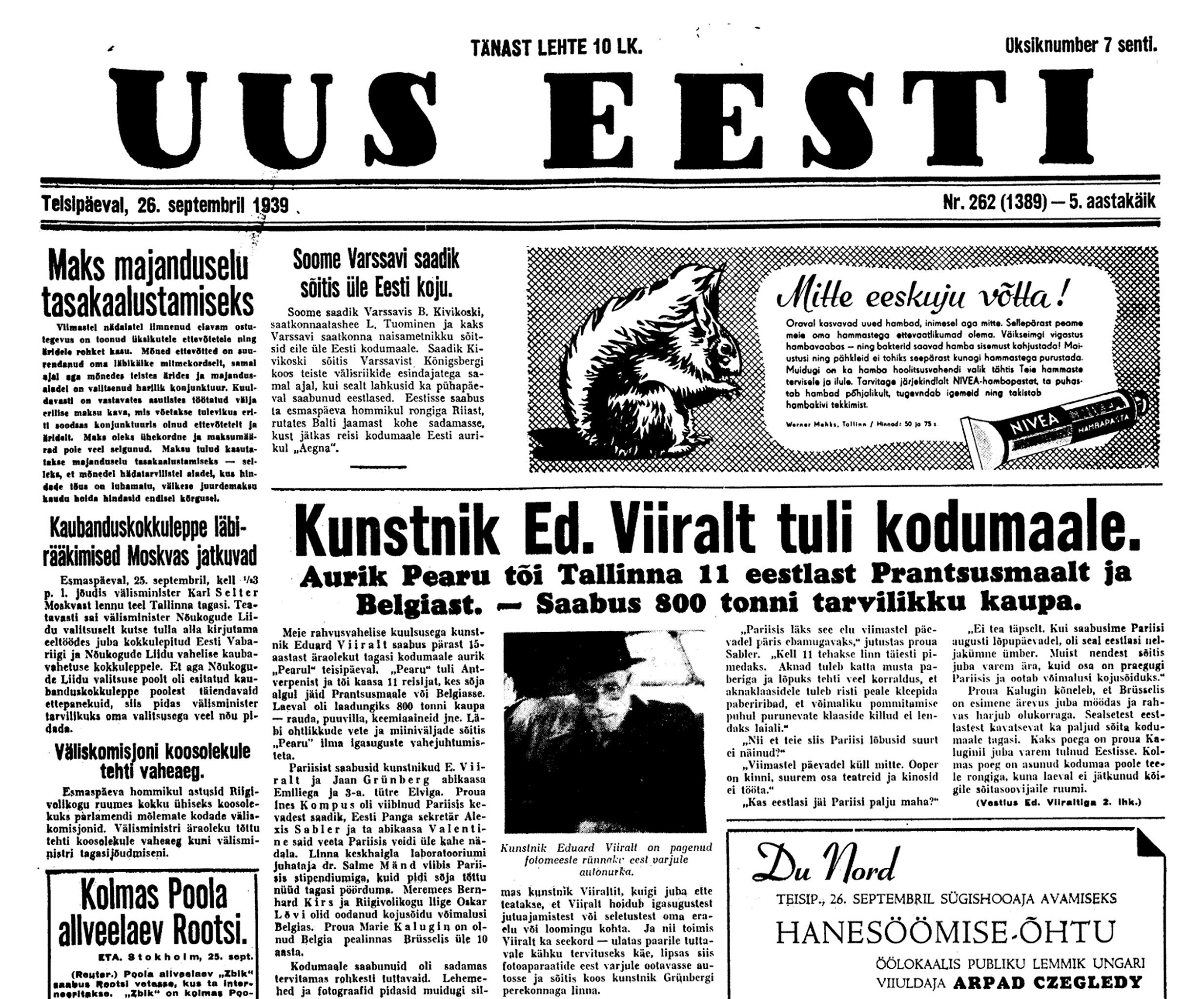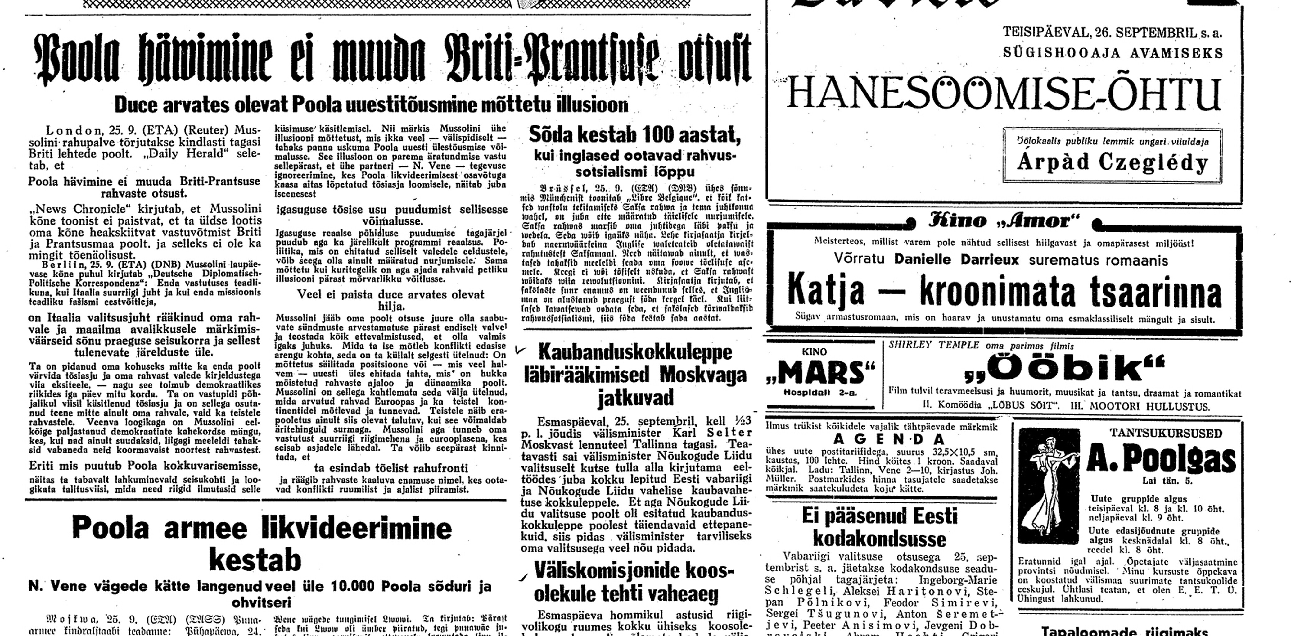 Karl Soonpää päevik 25.-26. septembril 1939. aastal